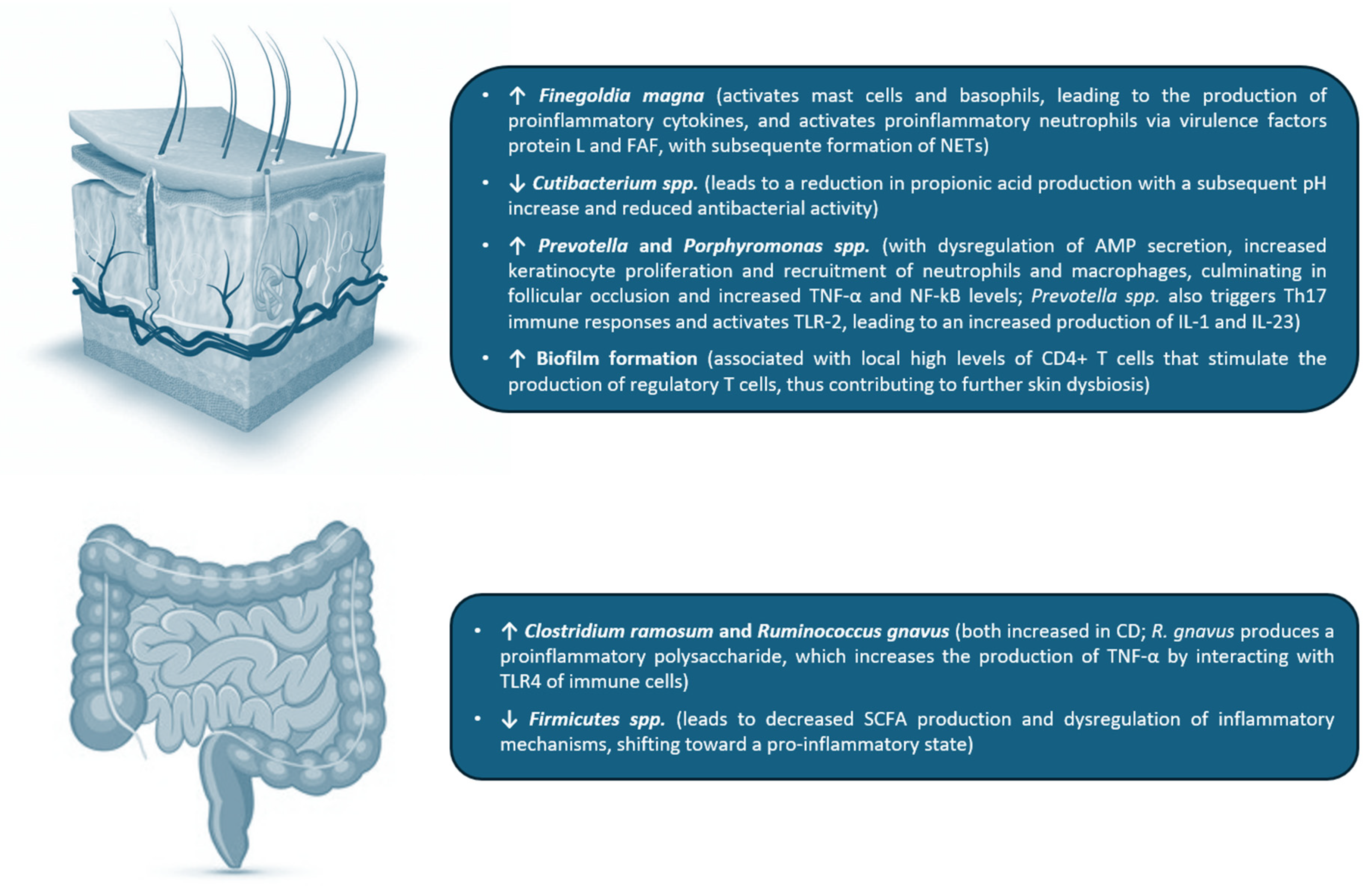 - Lelonek, E.; Bouazzi, D.; Jemec, G.B.E.; Szepietowski, J.C. Skin and Gut Microbiome in Hidradenitis Suppurativa: A Systematic Review. Biomedicines 2023, 11, 2277. [Google Scholar] [CrossRef]