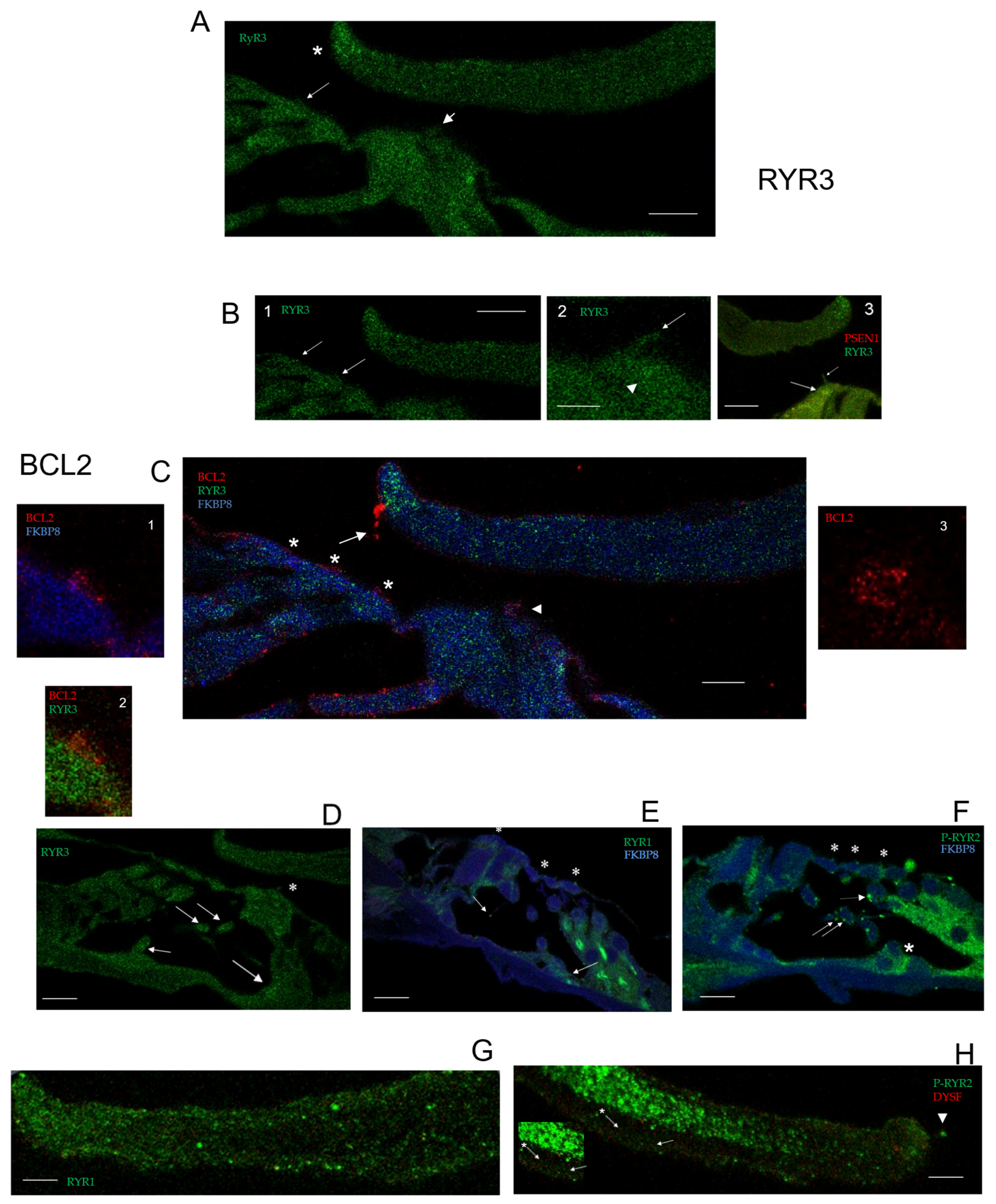 - Vervliet, T.; Decrock, E.; Molgó, J.; Sorrentino, V.; Missiaen, L.; Leybaert, L. Bcl-2 binds to and inhibits ryanodine receptors. J. Cell Sci. 2014, 127, 2782–2792. [Google Scholar] [CrossRef]