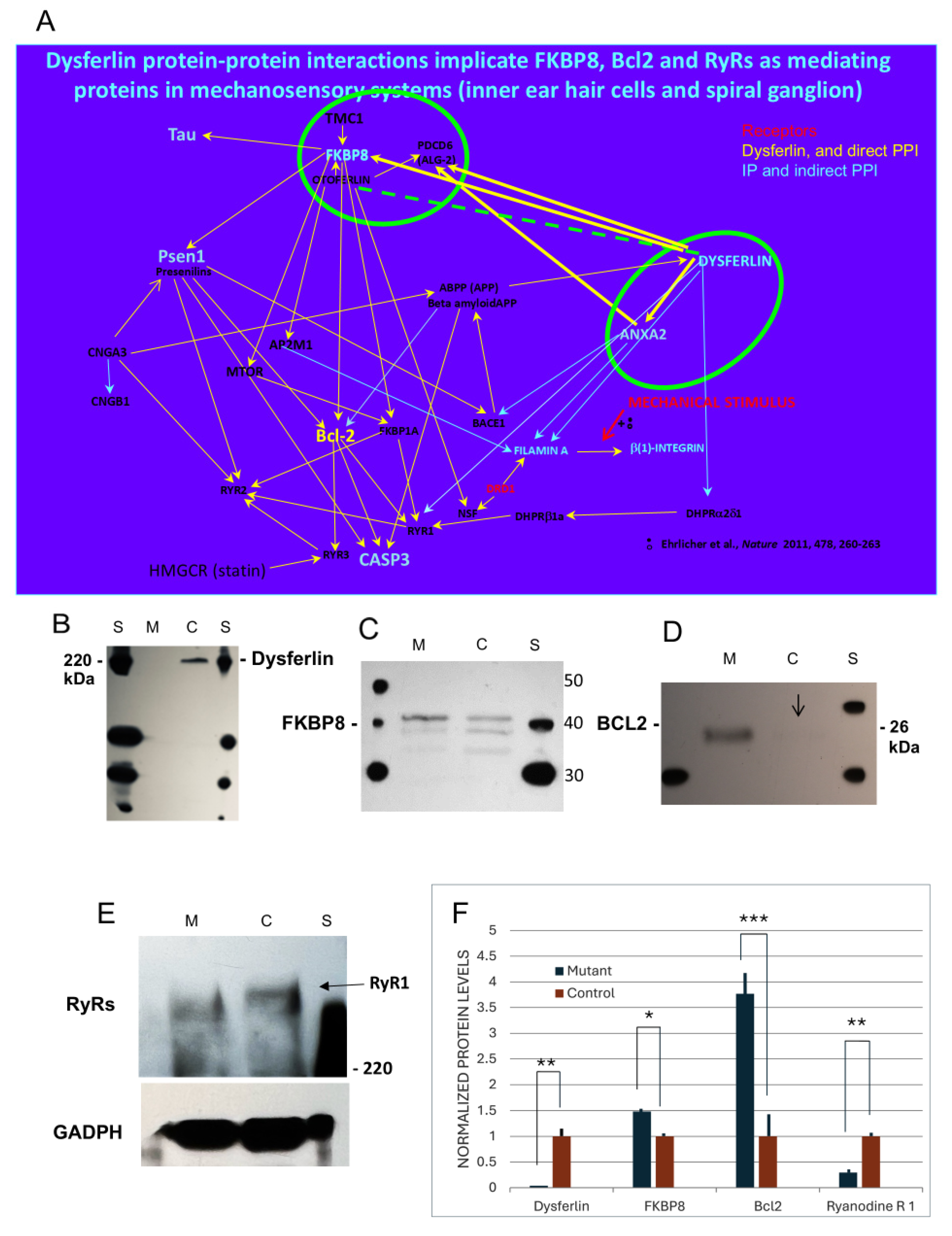 2.1. Hair Cell Proteins in Stereocilia Embedded in the Tectorial Membrane: Dysferlin, FKBP8, BCL2, RYRs, and Annexin A2 Form a Molecular Pathway to Regulate Ca2+