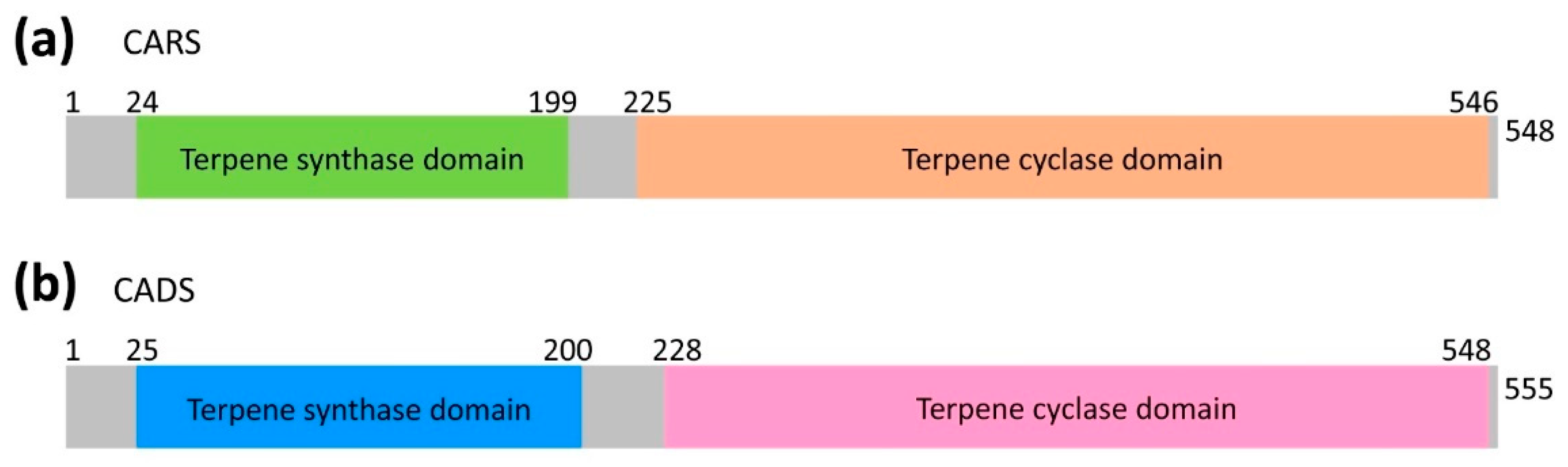 Liu, D.; Li, N.; Deng, H.; Song, D.; Song, H. Integrating Structural Bioinformatics and Functional Mechanisms of Sesquiterpene Synthases CARS and CADS in Lavandula angustifolia (Lavender). Int. J. Mol. Sci. 2025, 26, 9568. https://doi.org/10.3390/ijms26199568