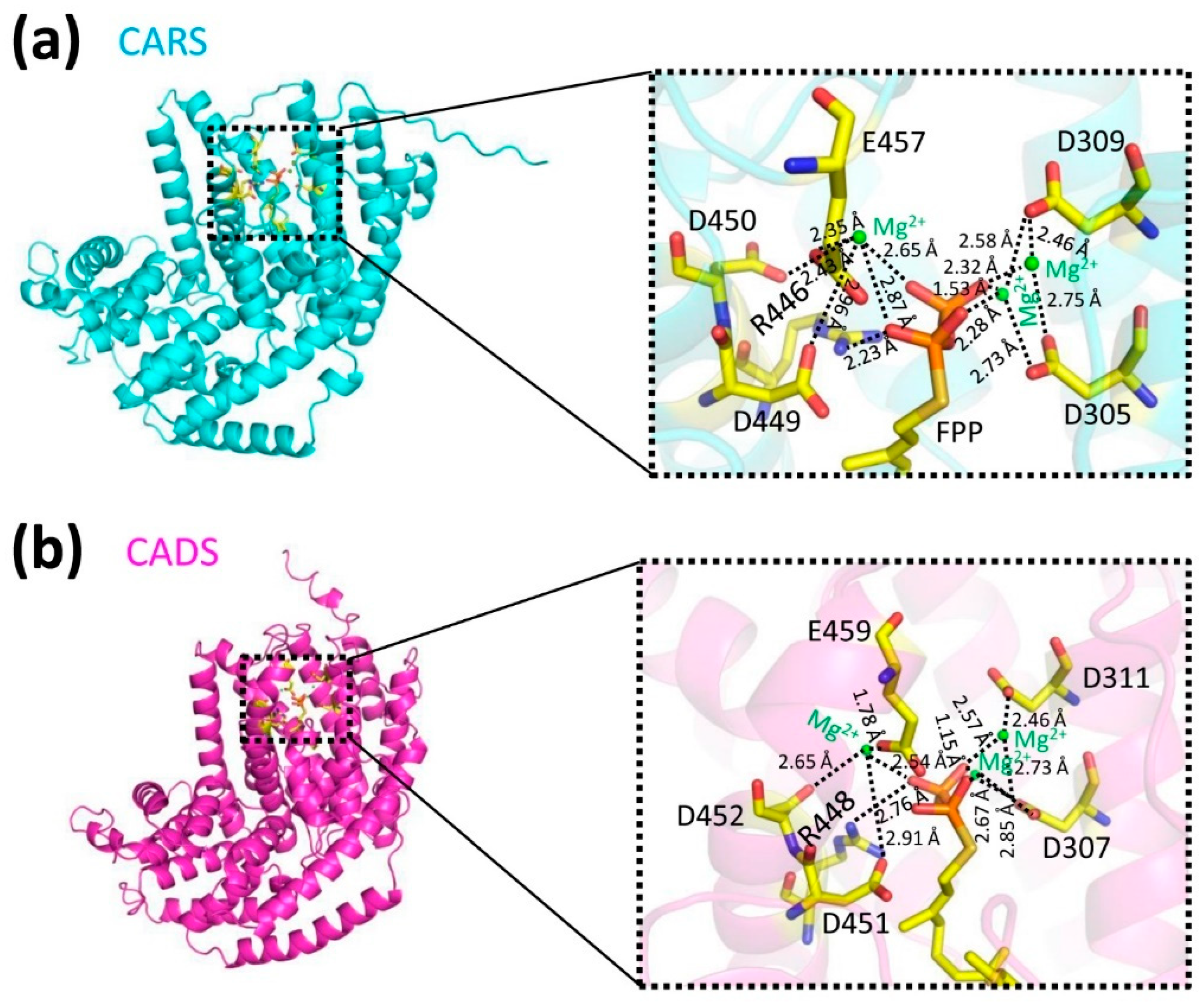 Chicago/Turabian StyleLiu, Dafeng, Na Li, Huashui Deng, Daoqi Song, and Hongjun Song. 2025. "Integrating Structural Bioinformatics and Functional Mechanisms of Sesquiterpene Synthases CARS and CADS in Lavandula angustifolia (Lavender)" International Journal of Molecular Sciences 26, no. 19: 9568. https://doi.org/10.3390/ijms26199568