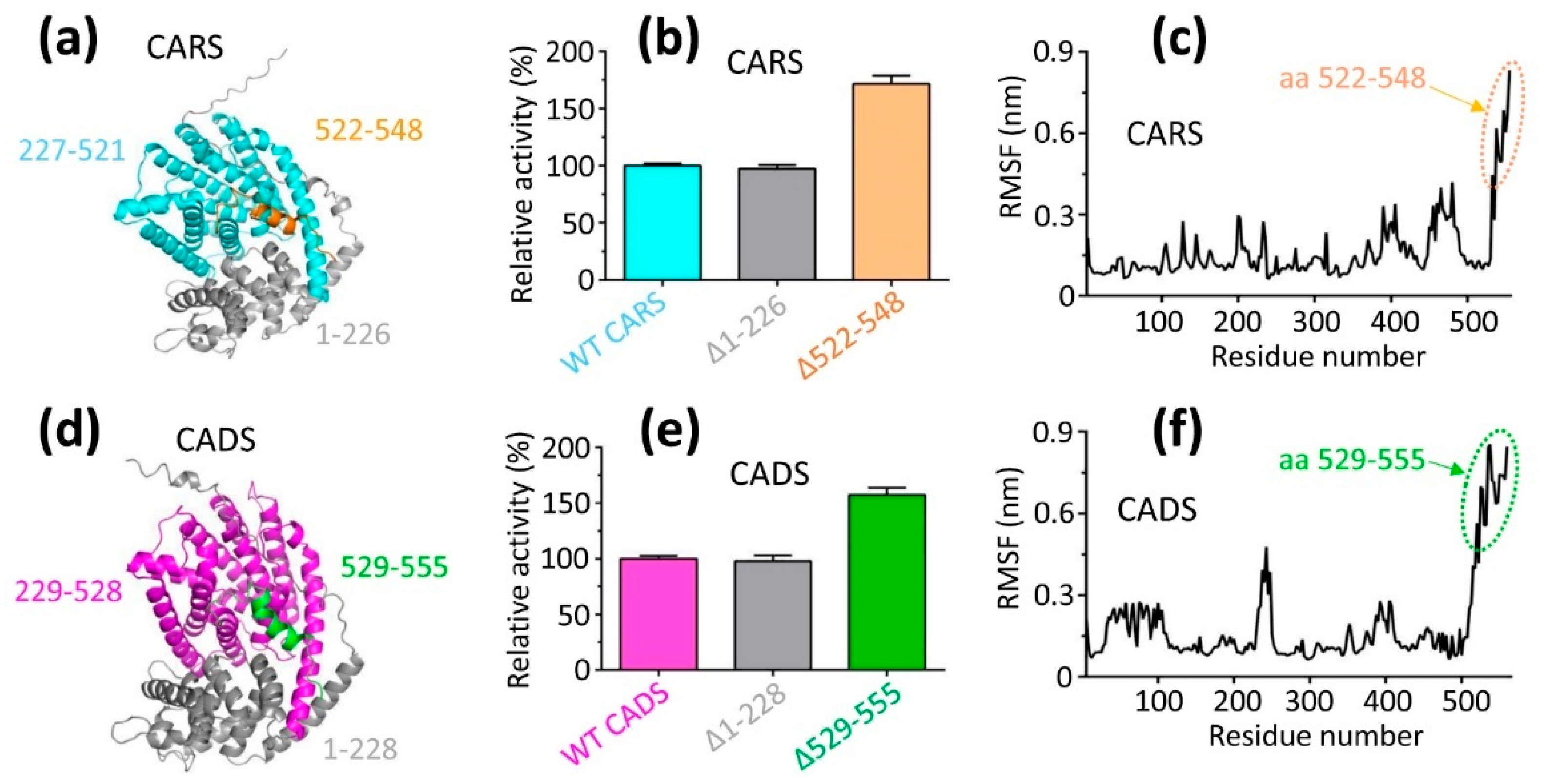 2.6. Deleting 522–548 and 529–555 Resulted in a Dramatic Increase in the Activity Compared to Wild-Type CARS and CADS, Respectively