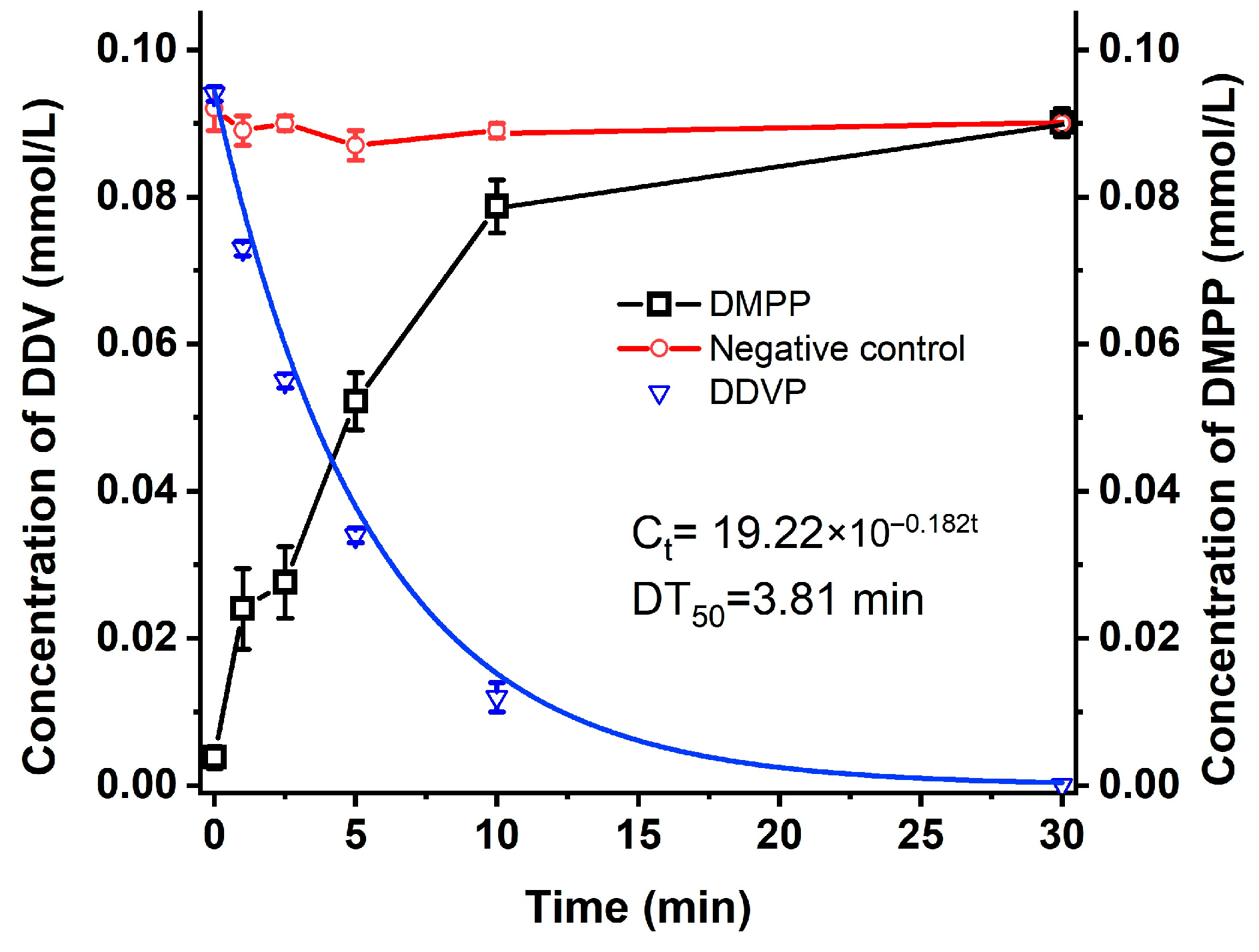 4.8. Degradation Characteristics of DDVP by Purified Enzyme