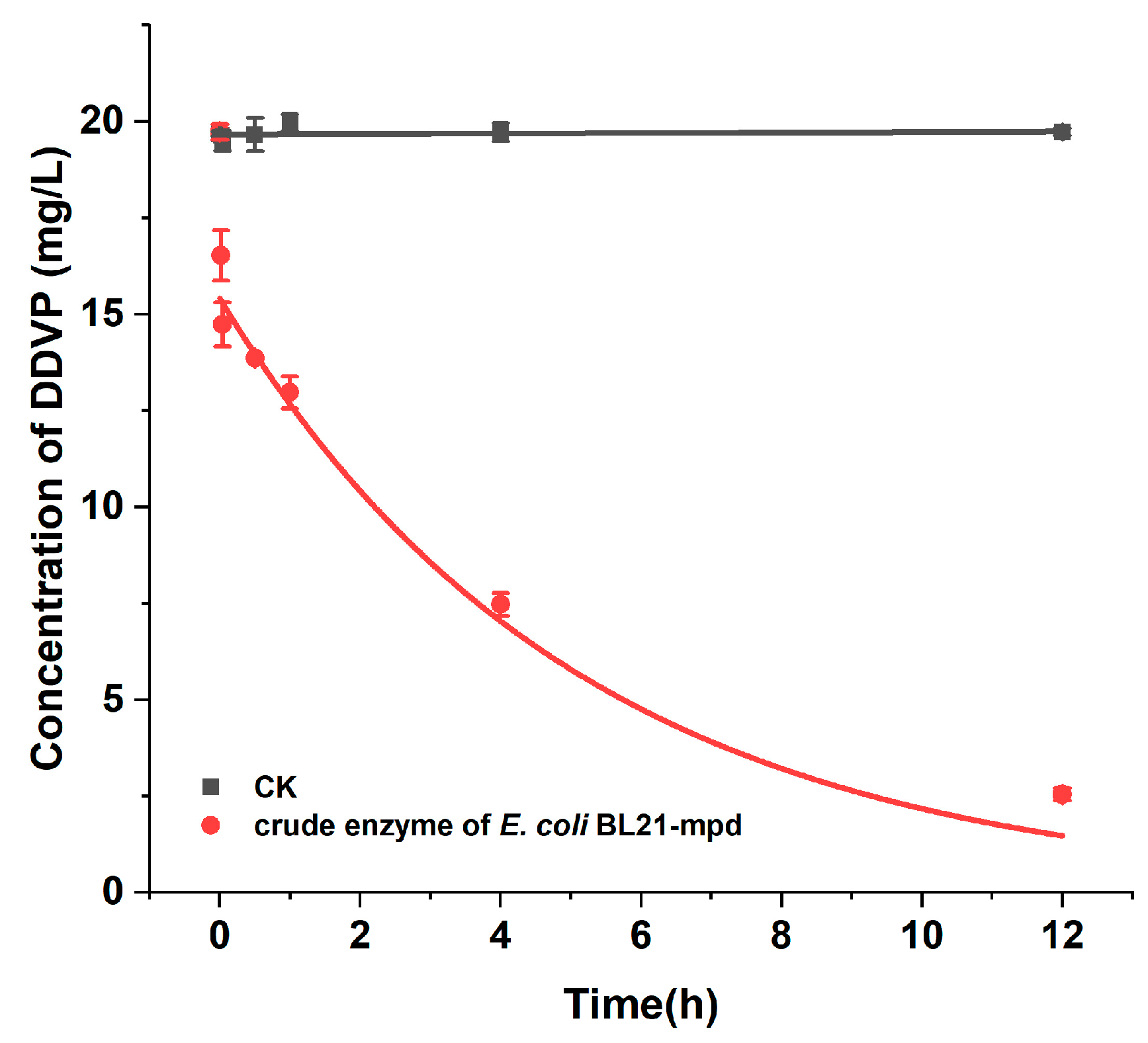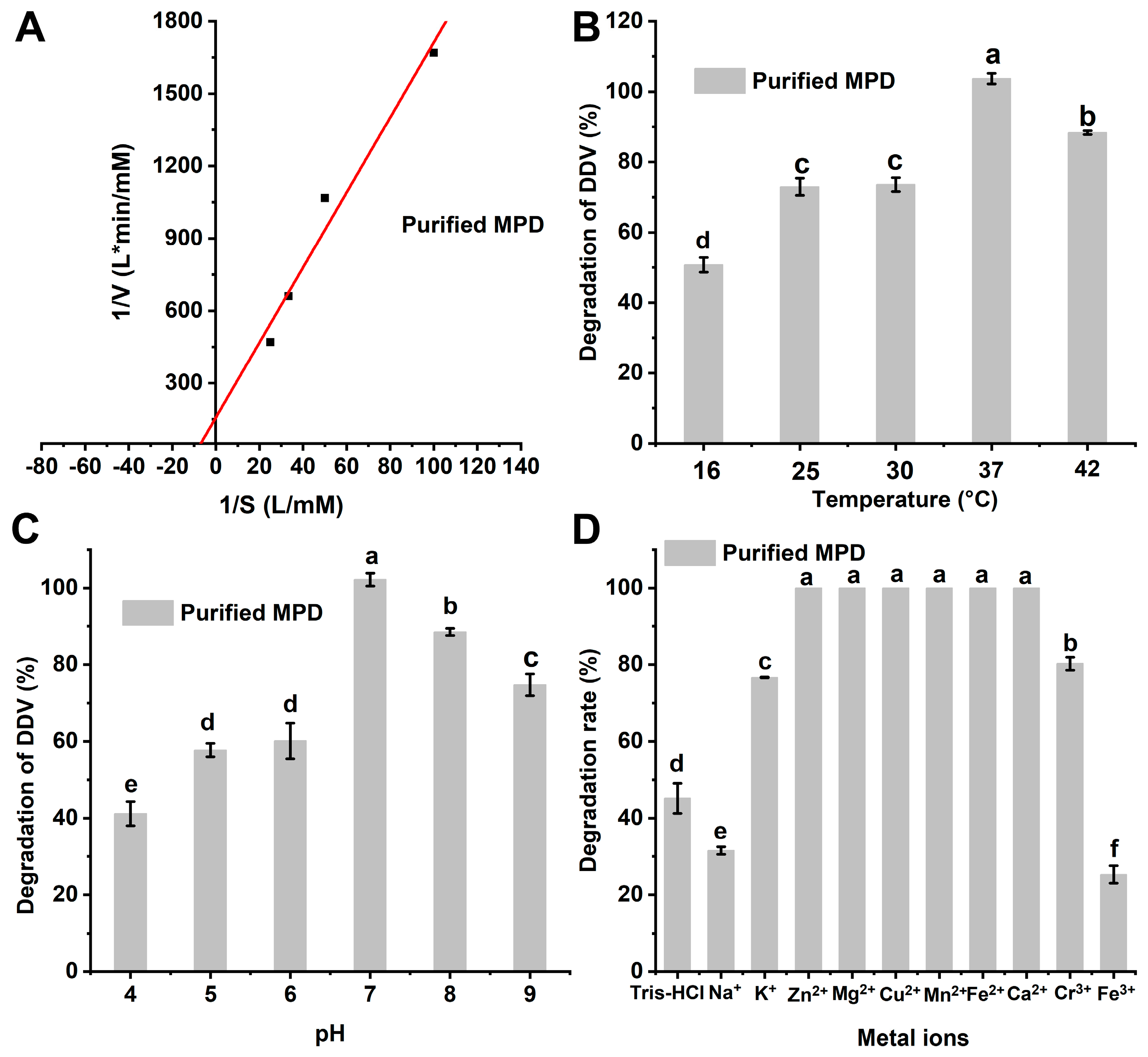 2.3. Degradation Kinetics of Purified Enzyme MPD for DDVP