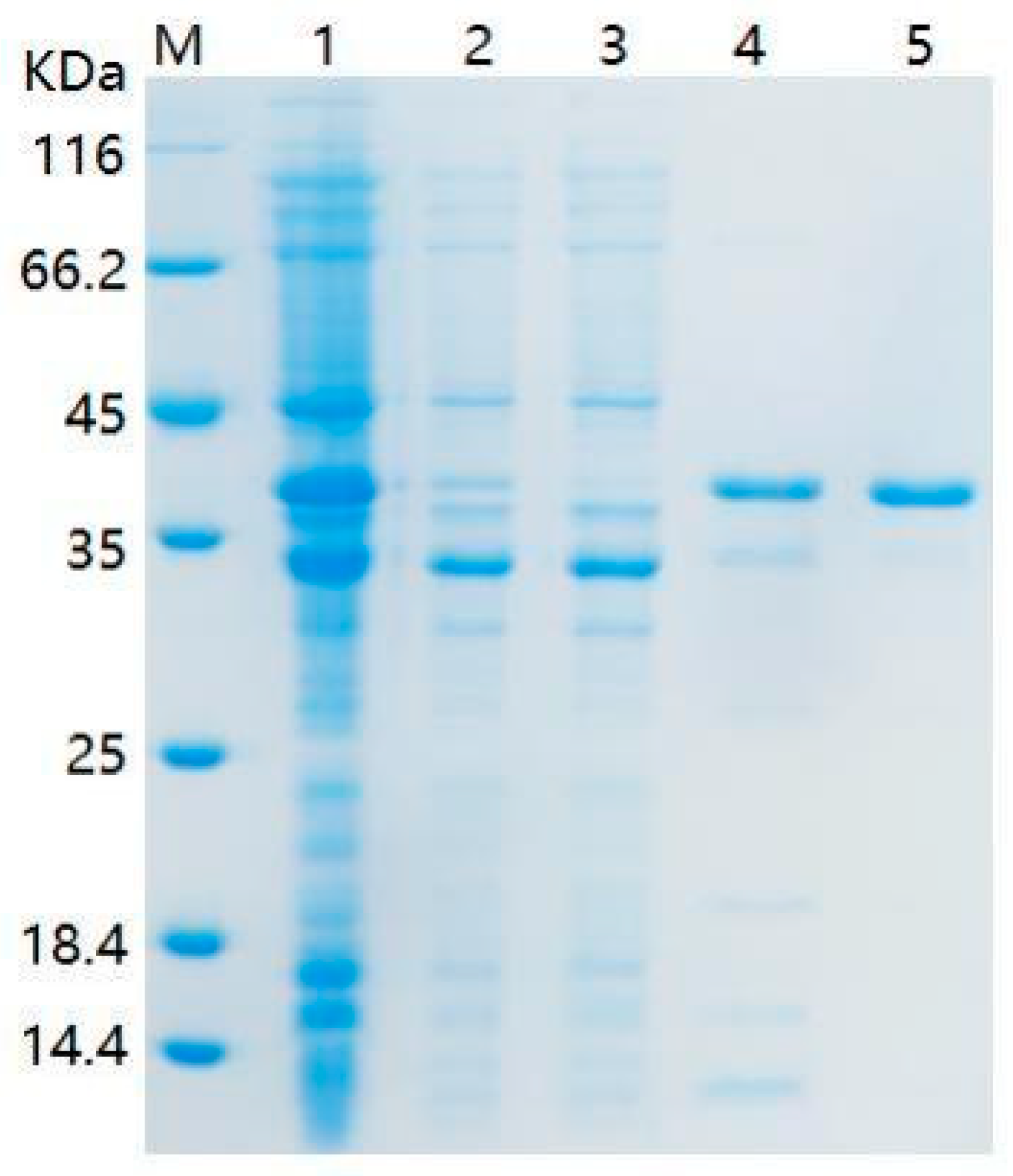 4.6. Cloning, Expression of the mpd Gene, and Purification of Enzyme MPD