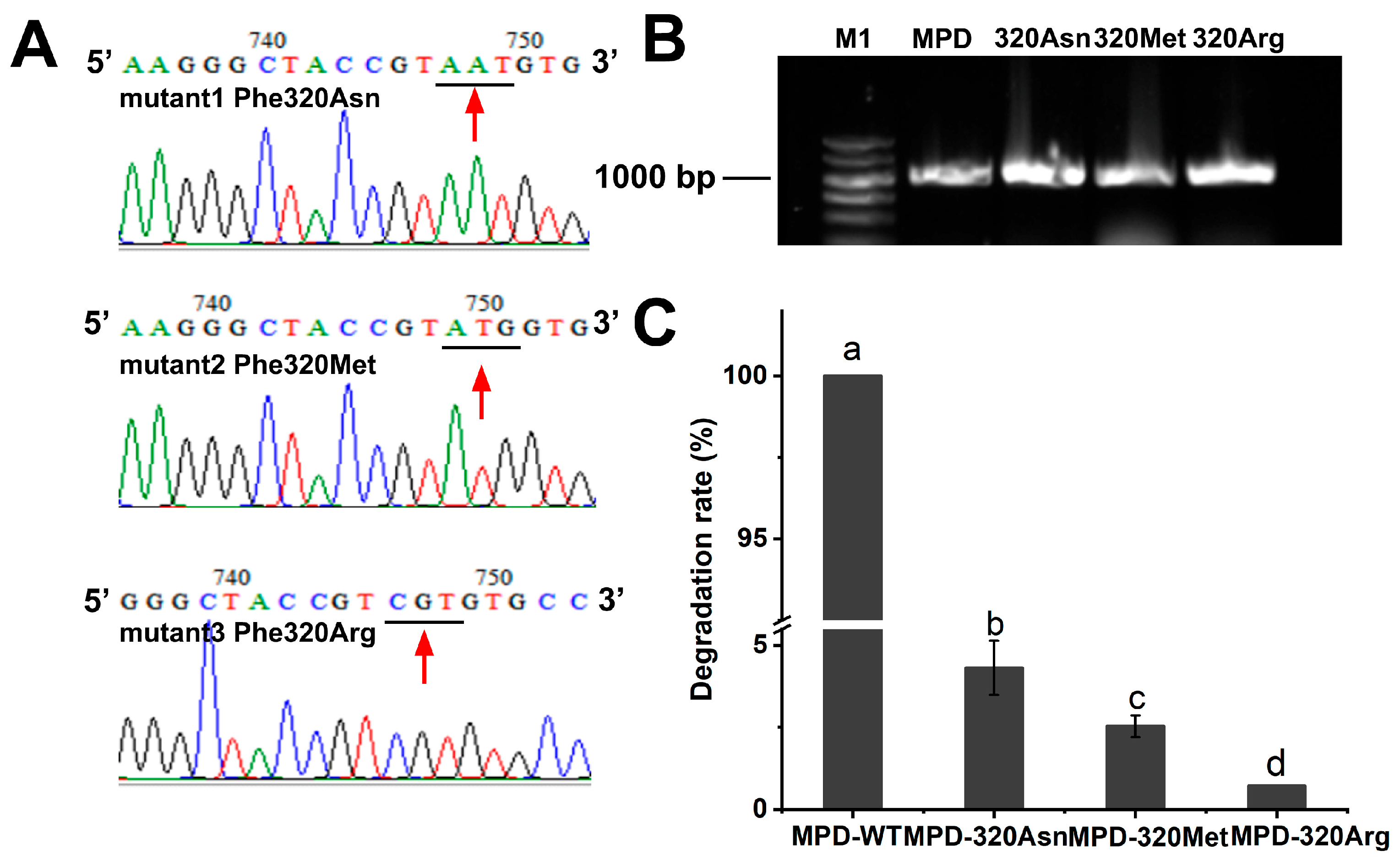 2.4. Catalytic Mechanism of Degrading Enzyme MPD on DDVP