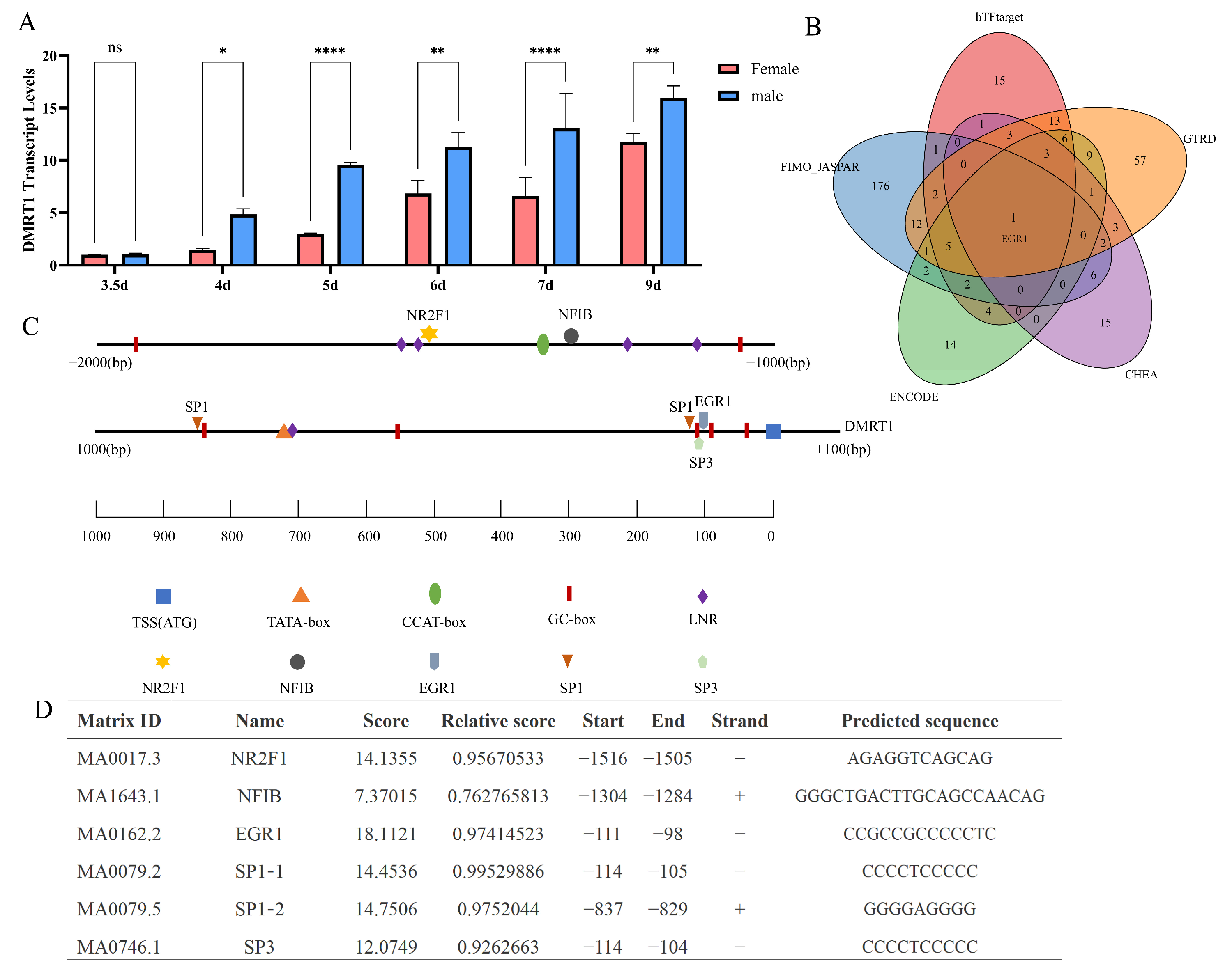 2.5. Prediction of Binding Between Transcription Factors NFIB and NR2F1 with DMRT1