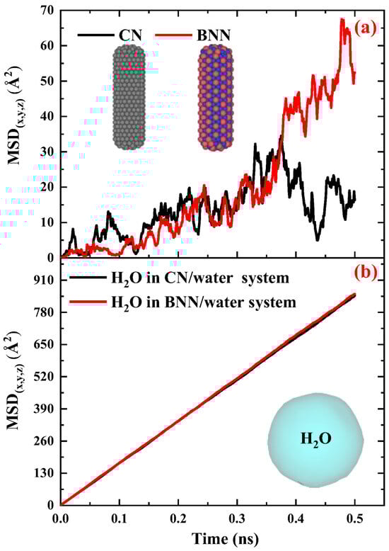 2.2.3. Comparison of the Diffusivity of Carbon and Boron-Nitride Nanocapsules