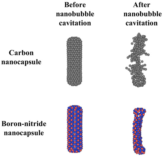 APA StyleHeydarian, F., Rajabi Moghadam, S., Ghasemi, M., Saniei, E., Rezaee, S., Kadivar, E., & el Moctar, O. (2025). Role of Nanobubble Cavitation in Triggering Drug Release from Boron-Nitride and Carbon Nanocapsules and Their Diffusion for Drug Delivery Applications: A Molecular Dynamics Study. International Journal of Molecular Sciences, 26(19), 9582. https://doi.org/10.3390/ijms26199582