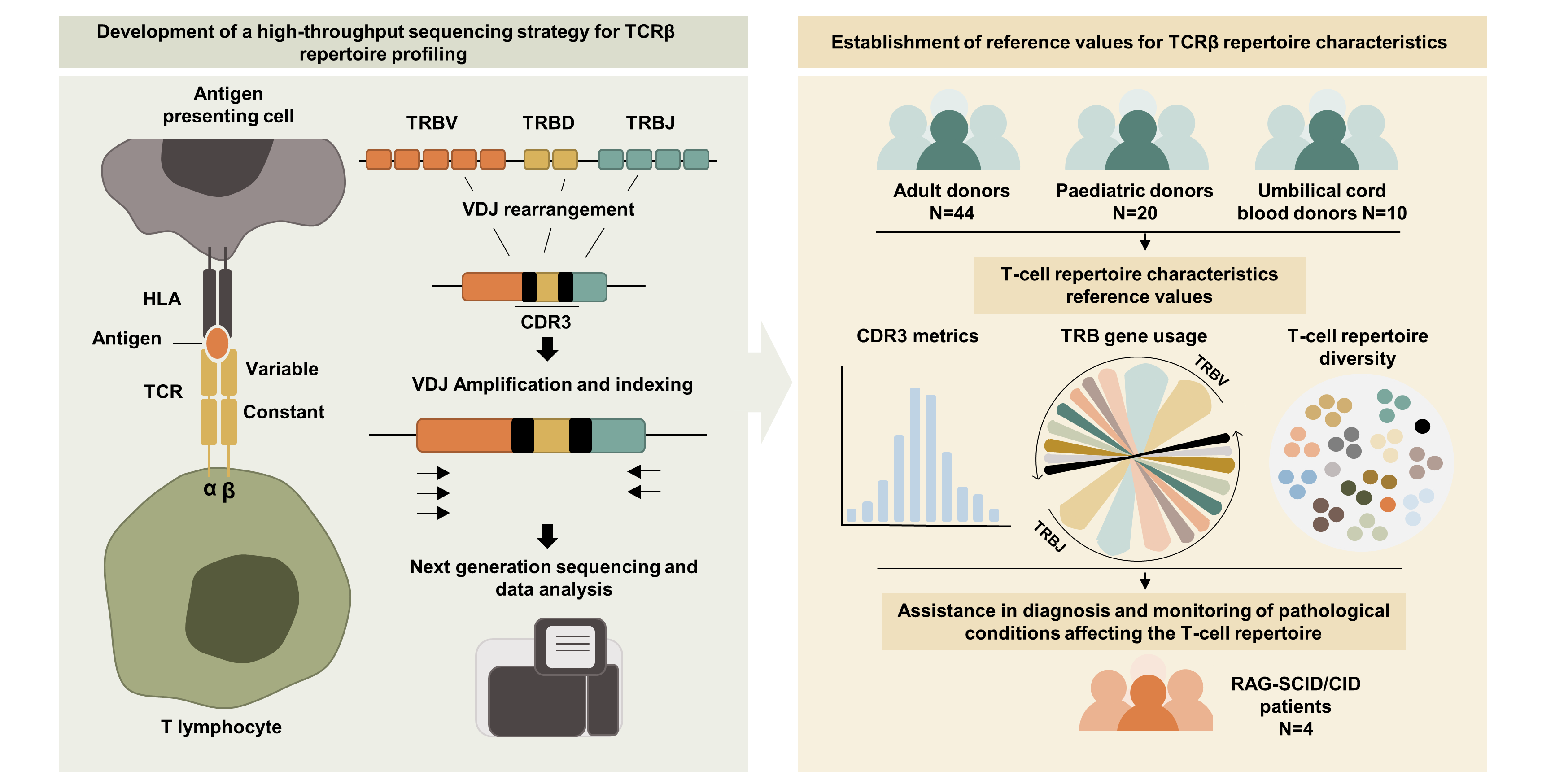 Enrich, E.; Antón-Iborra, M.; Hobeich, C.; Mora-Buch, R.; Lara-de-León, A.G.; Parra-Martínez, A.; Sánchez, B.; Vidal, F.; Soler-Palacin, P.; Rudilla, F. A High-Throughput Sequencing Strategy for Clinical Repertoire Profiling of T Cell Receptor Beta Chain: Development and Reference Values Across Healthy Adults, Paediatrics, and Cord Blood Units. Int. J. Mol. Sci. 2025, 26, 9590. https://doi.org/10.3390/ijms26199590