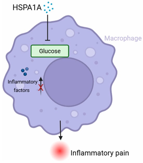 Schematic diagram. The present study demonstrated that HSPA1A significantly ameliorated CFA-induced inflammatory pain. This protective effect was achieved through inhibition of macrophage M1 polarization and glycolysis. HSPA1A inhibited glycolysis, thereby reducing macrophage M1 polarization and the release of inflammatory factors.
