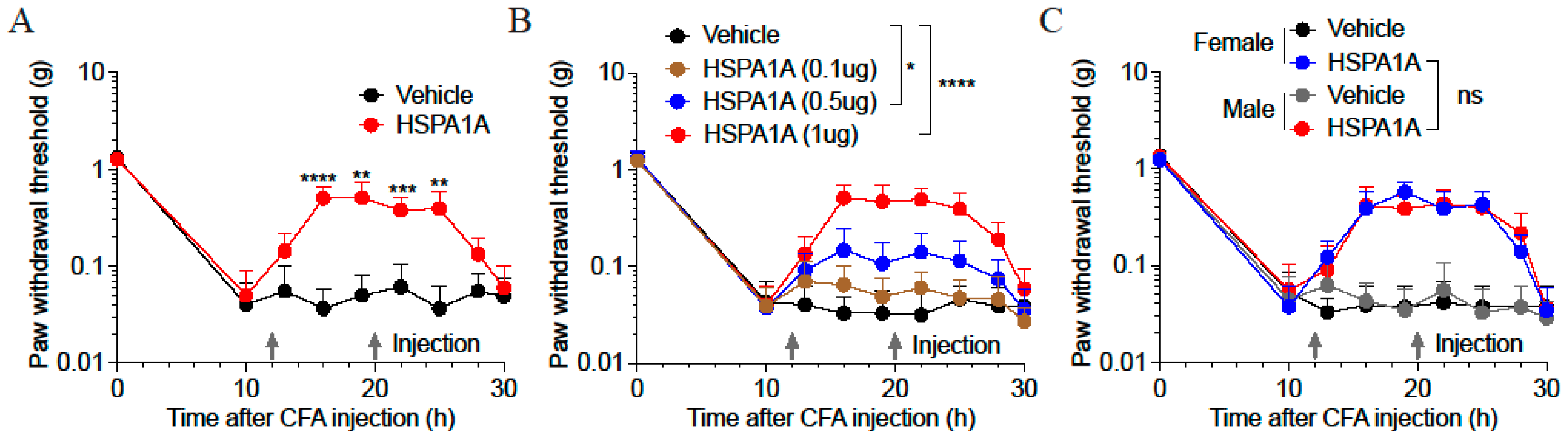 2.1. Effects of Different HSPA1A Doses on Inflammatory Pain Mouse Models