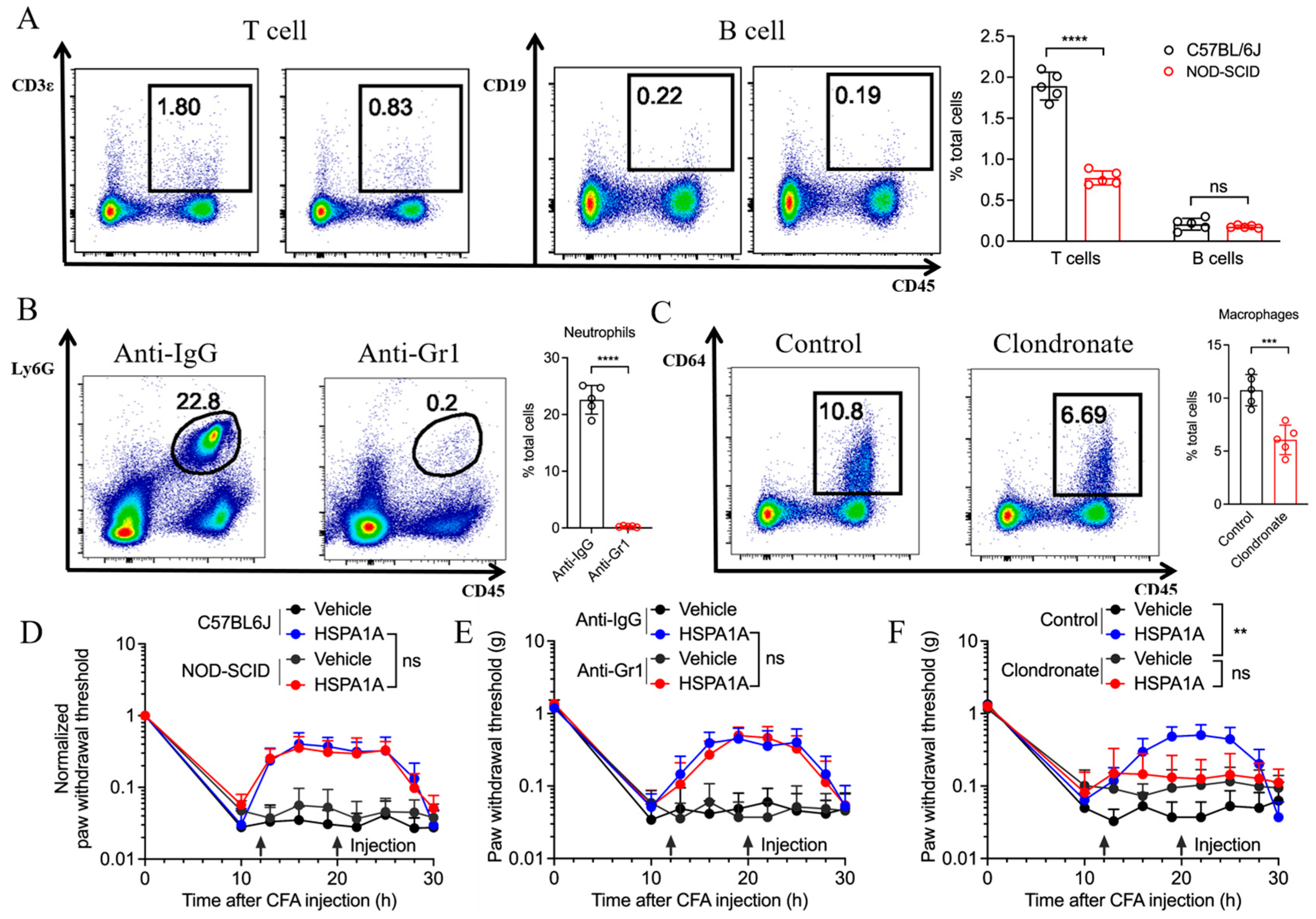 2.3. Impact of Different Immune Cells on HSPA1A-Mediated Analgesia