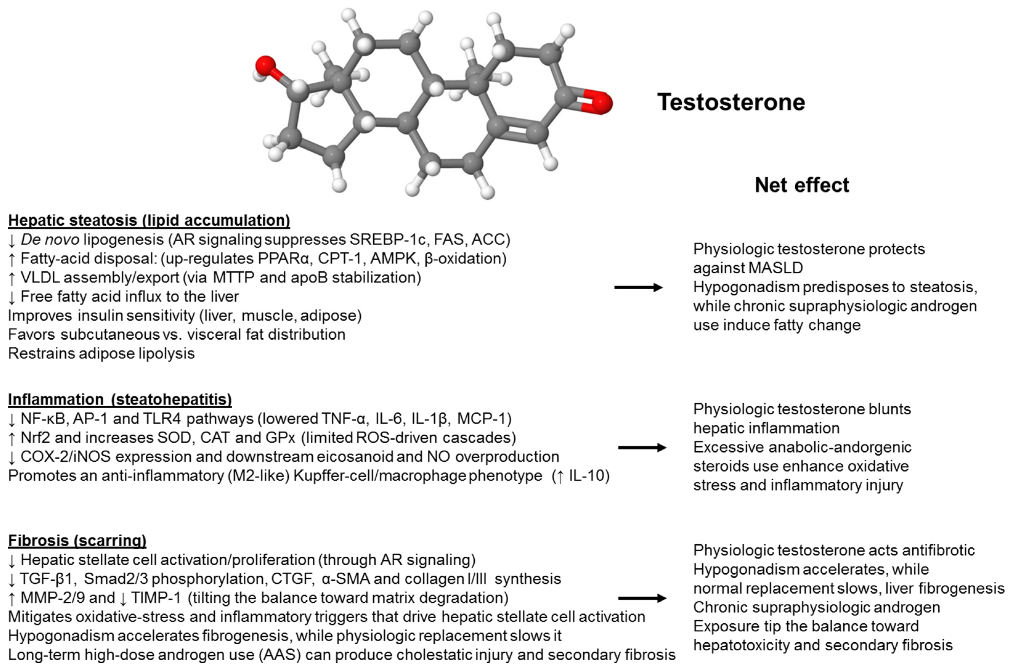- Lonardo, A.; Weiskirchen, R. Testosterone rescue for failing livers? Target-trial signals survival gains in hypogonadic men with cirrhosis. Adv. Transl. Med. 2025, 4, 1–4. [Google Scholar] [CrossRef]