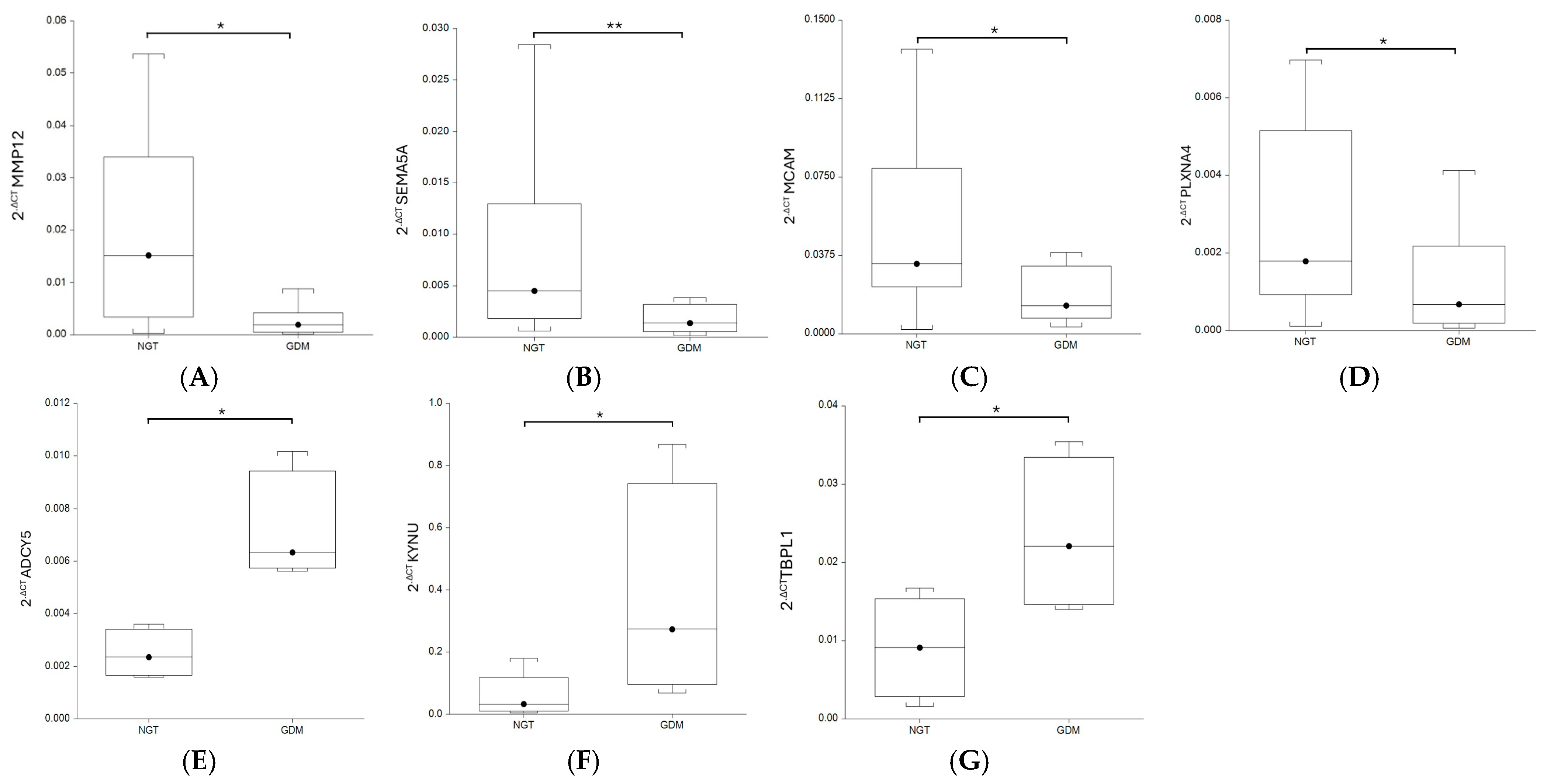 2.2. Differential Gene Expression Profiles of NGT and GDM Patients