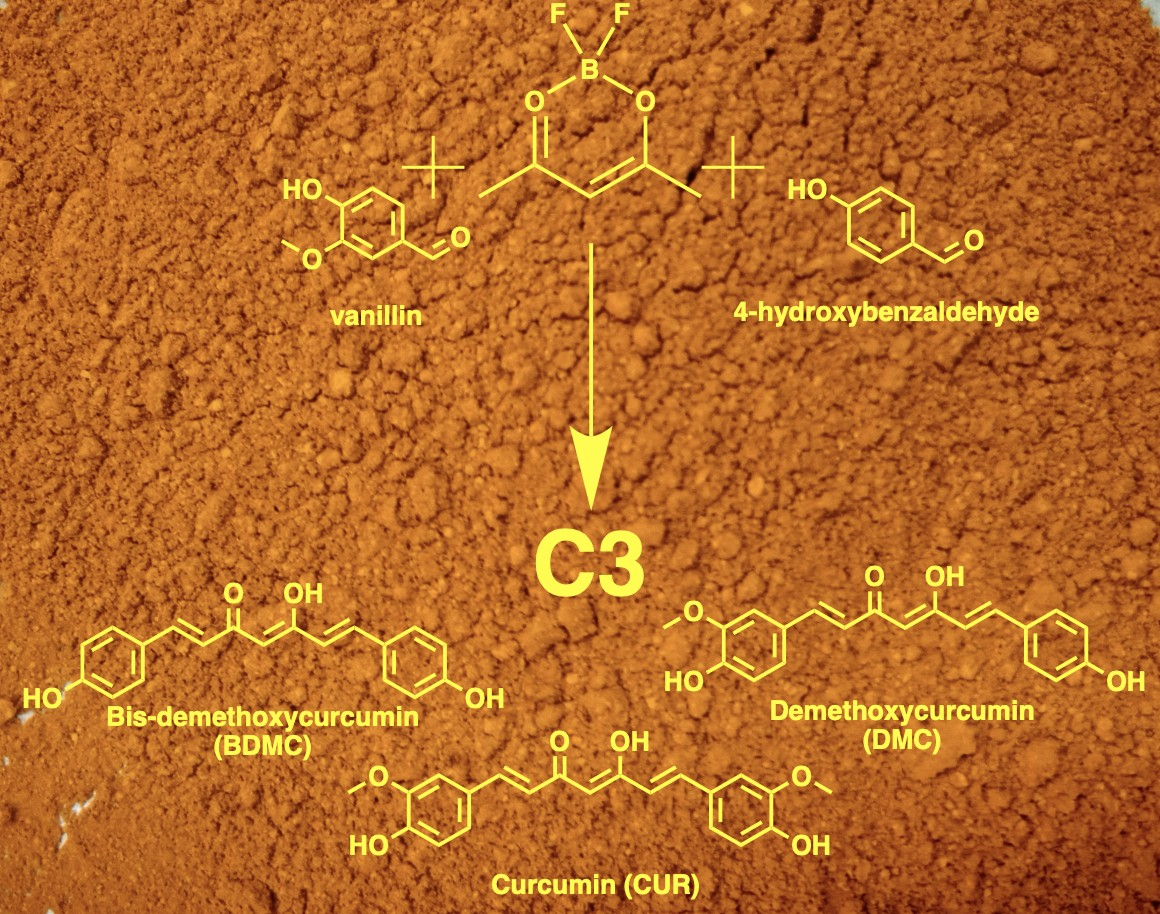 38], their chemical composition of individual components is different. Therefore, to establish a difference between curcumin (CUR) and curcuminoid mixtures from turmeric or synthetic C-3 (CUR, DMC, BDMC) is essential. Thus, we recorded and compared their