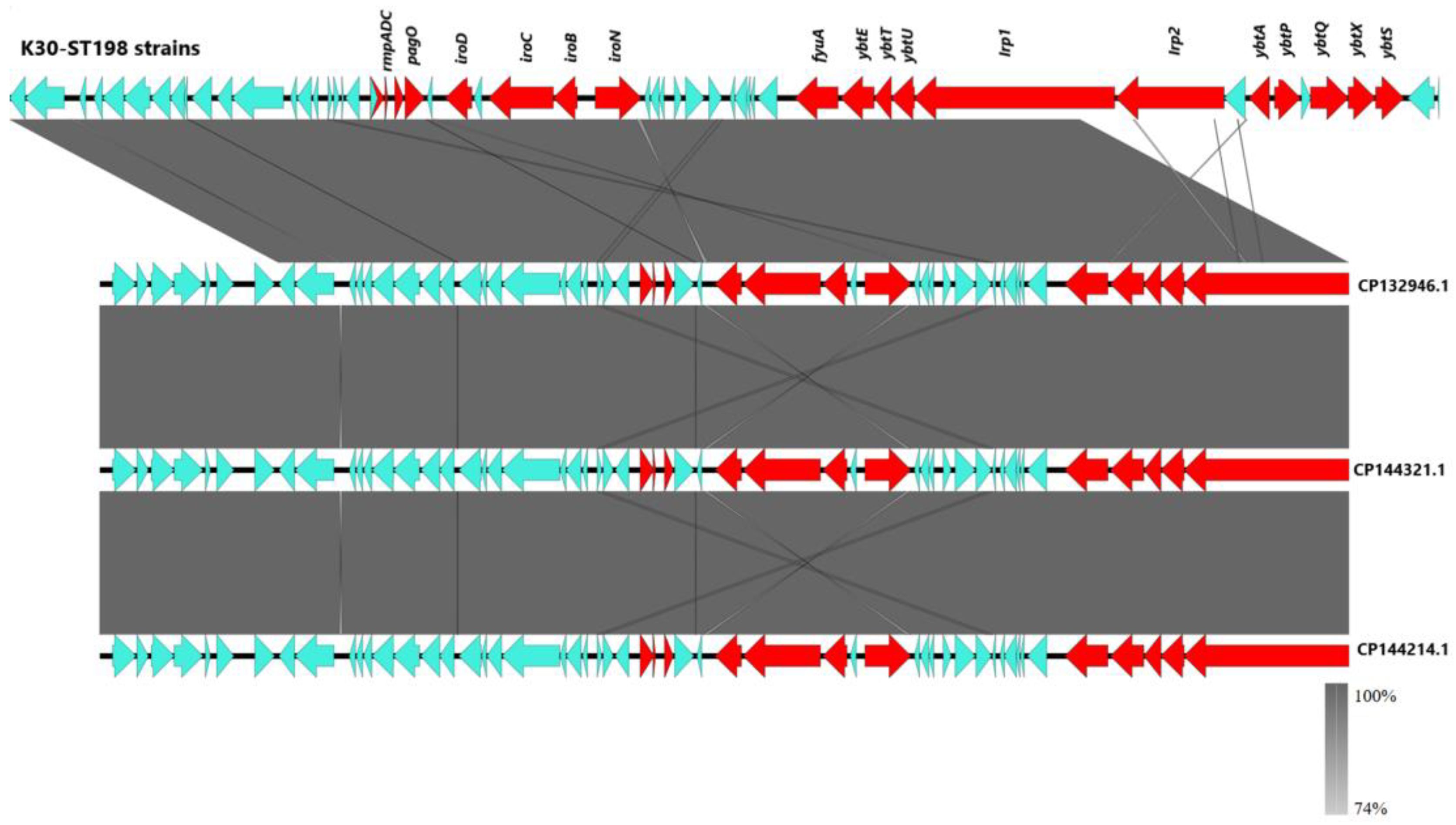 - Ye, M.; Tu, J.; Jiang, J.; Bi, Y.; You, W.; Zhang, Y.; Ren, J.; Zhu, T.; Cao, Z.; Yu, Z.; et al. Clinical and genomic analysis of liver abscess-causing Klebsiella pneumoniae identifies new liver abscess-associated virulence genes. Front. Cell. Infect. Microbiol. 2016, 6, 165. [Google Scholar] [CrossRef]