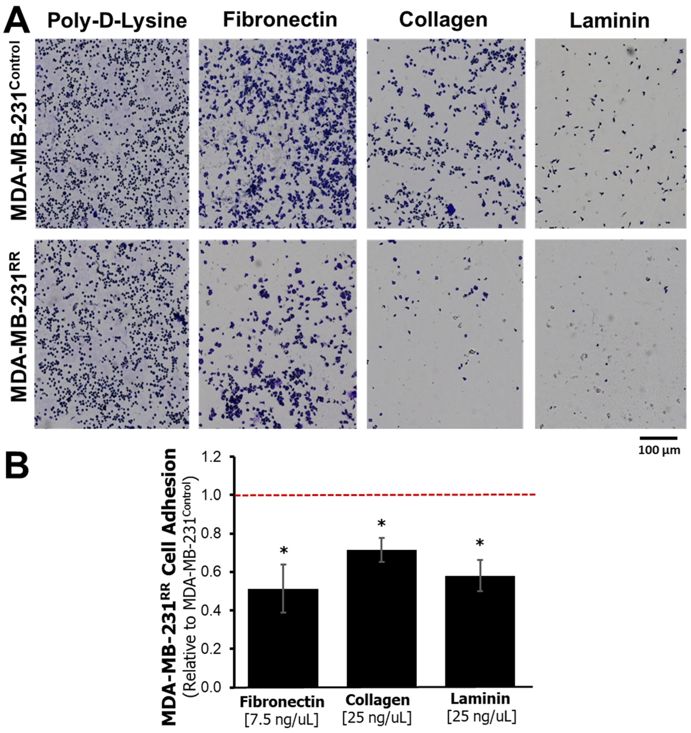 2.3. Functional Adhesion to ECM Proteins Is Reduced in MDA-MB-231RR Cells