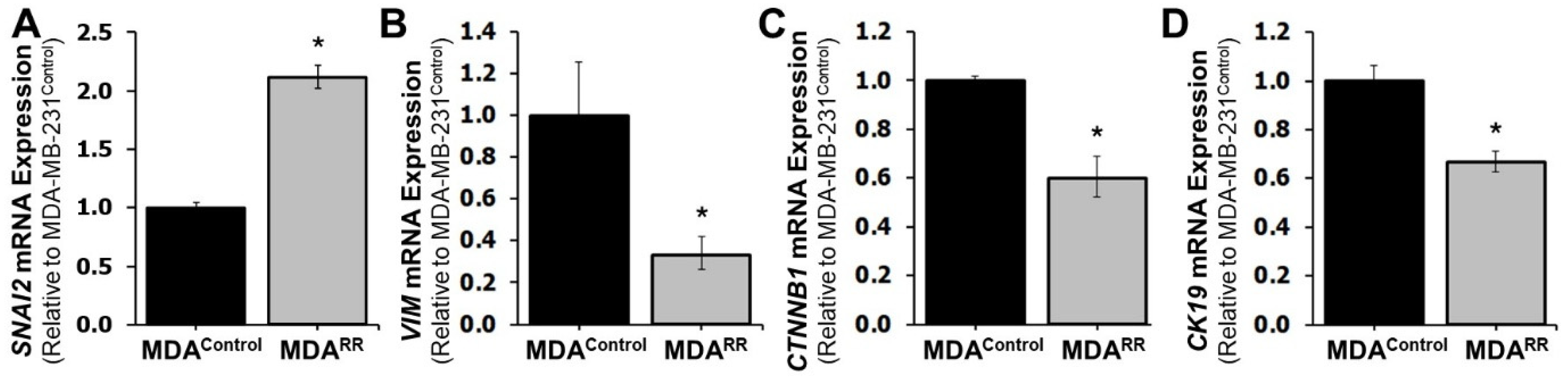 2.4. EMT-Associated Transcriptional Changes in MDA-MB-231RR Cells