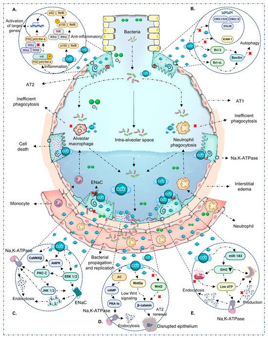 - Casalino-Matsuda, S.M.; Nair, A.; Beitel, G.J.; Gates, K.L.; Sporn, P.H.S. Hypercapnia Inhibits Autophagy and Bacterial Killing in Human Macrophages by Increasing Expression of Bcl-2 and Bcl-xL. J. Immunol. 2015, 194, 5388–5396. [Google Scholar] [CrossRef] [PubMed]
