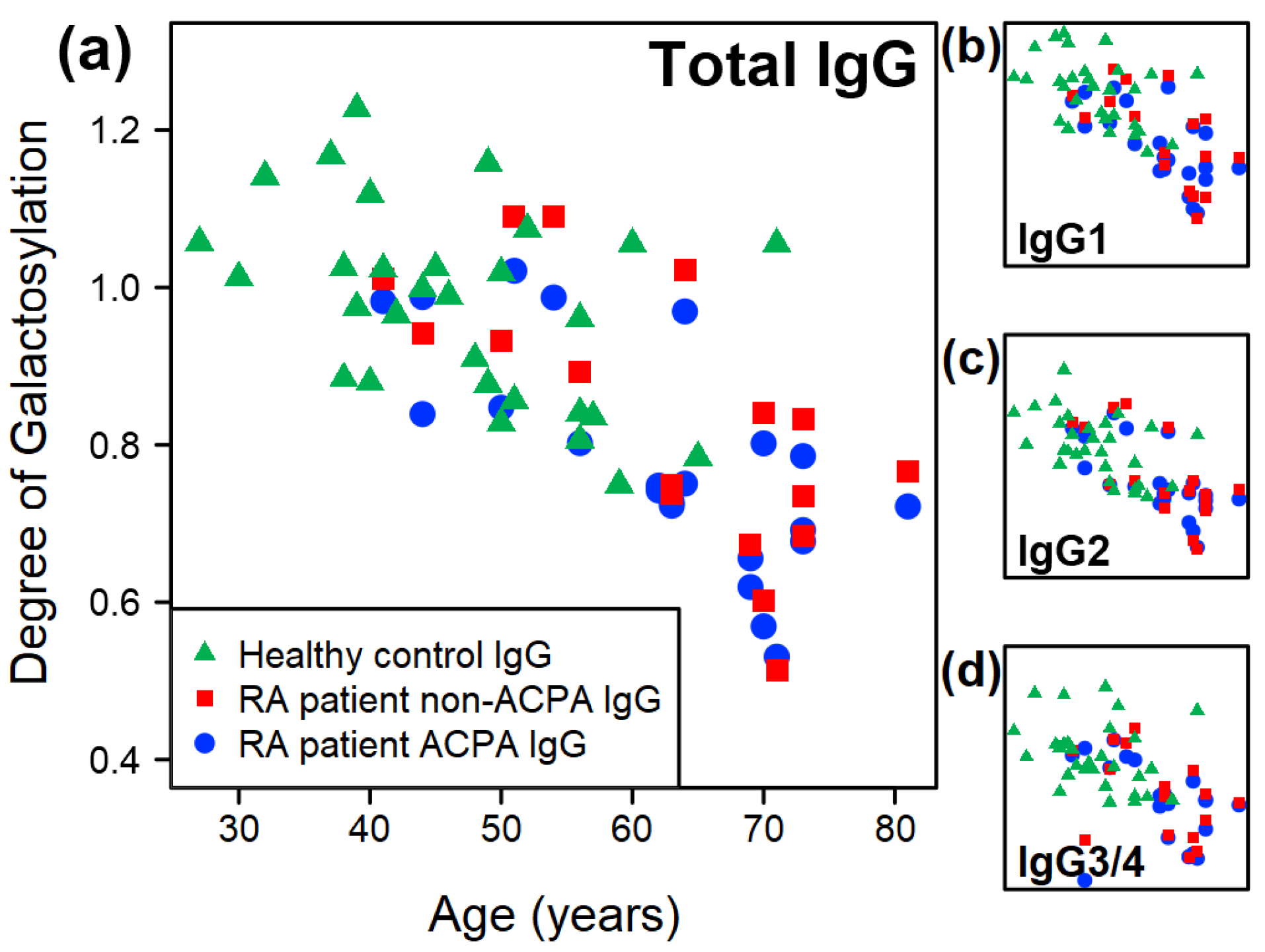 - Dekkers, G.; Rispens, T.; Vidarsson, G. Novel Concepts of Altered Immunoglobulin G Galactosylation in Autoimmune Diseases. Front. Immunol. 2018, 9, 553. [Google Scholar] [CrossRef]