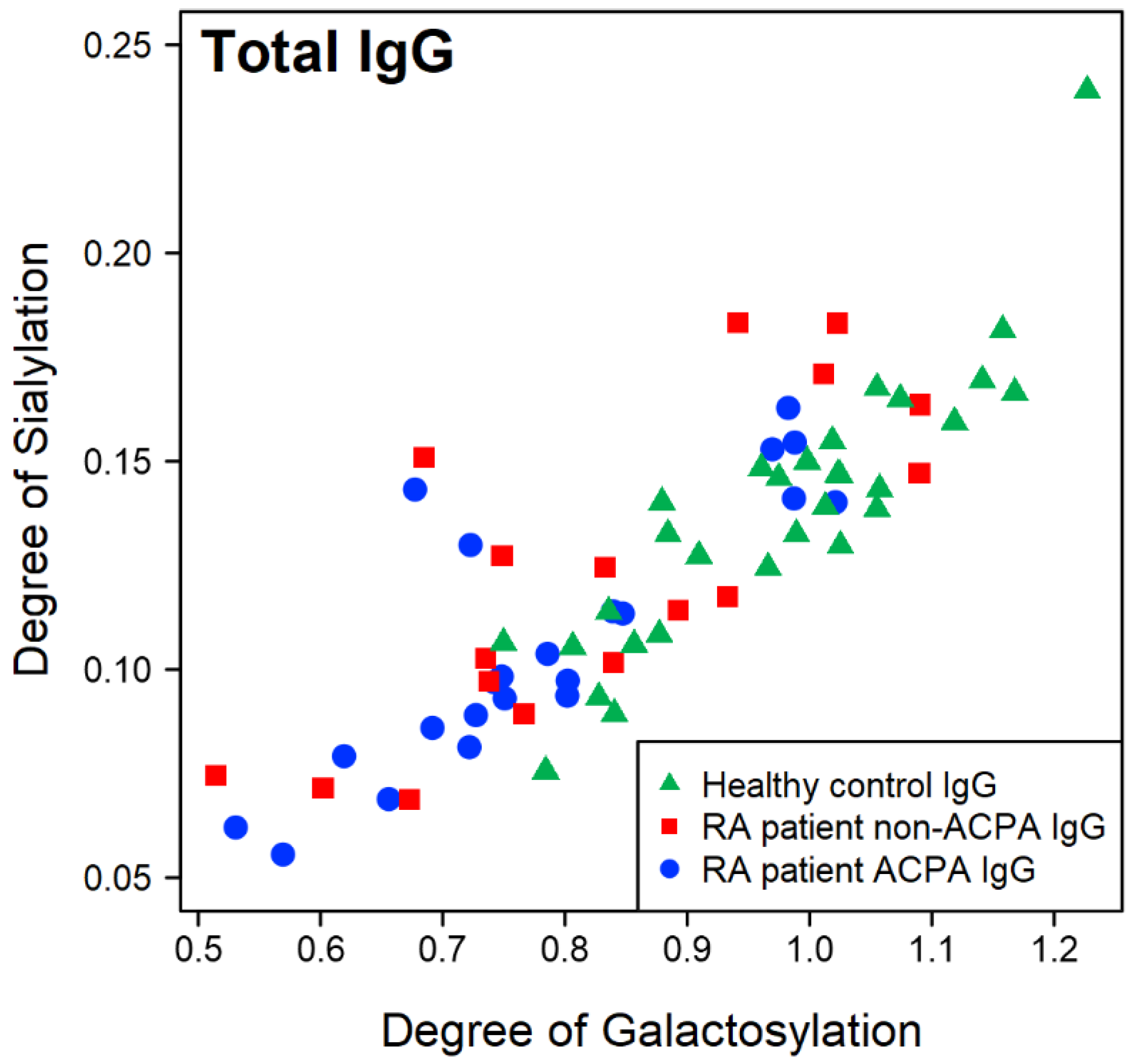 2.1. Overall Trends of Glycosylation of IgG from RA Patients and Healthy Controls