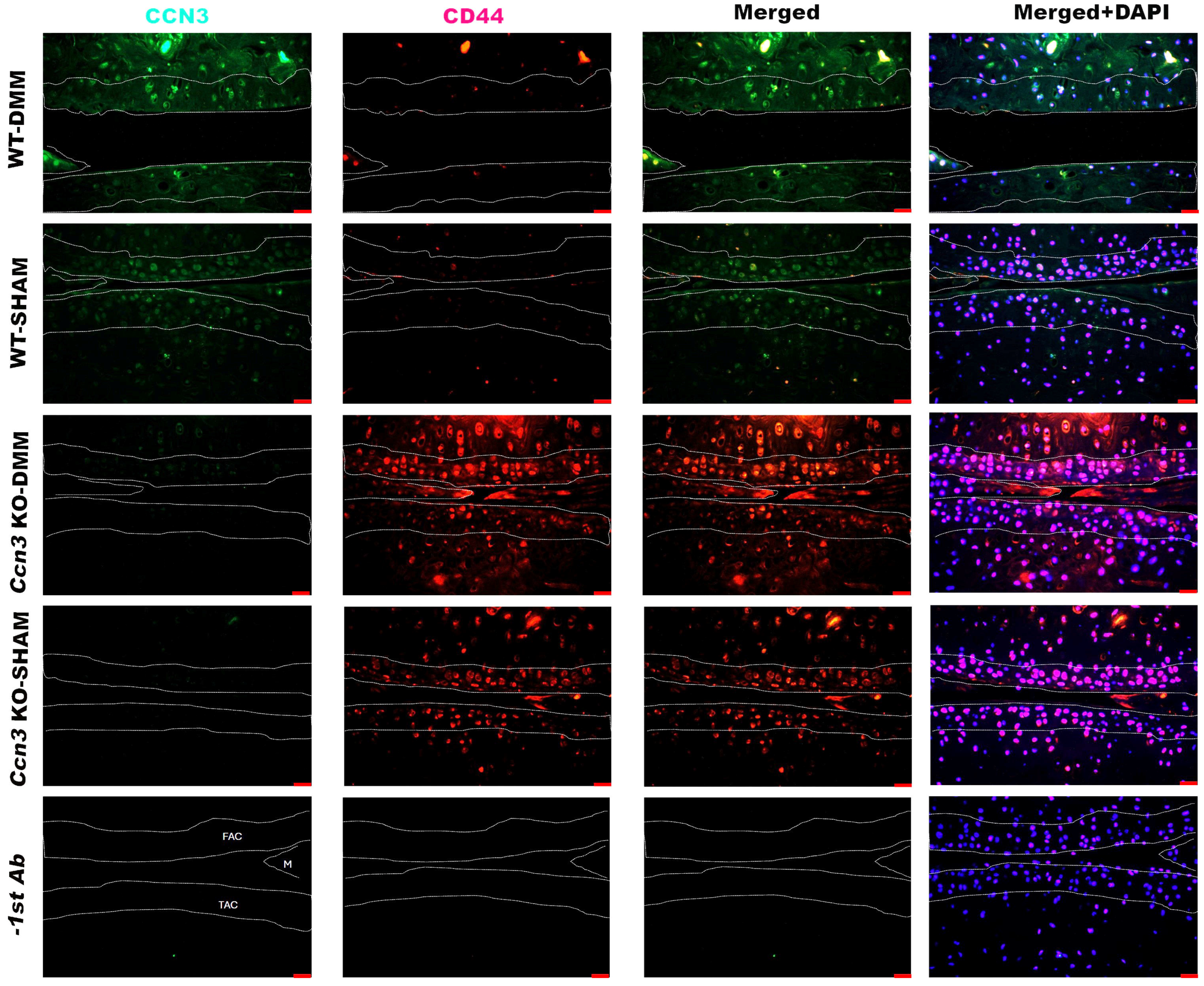 2.4. Colocalization of CCN3 and CD44 in Ccn3 WT-DMM Samples