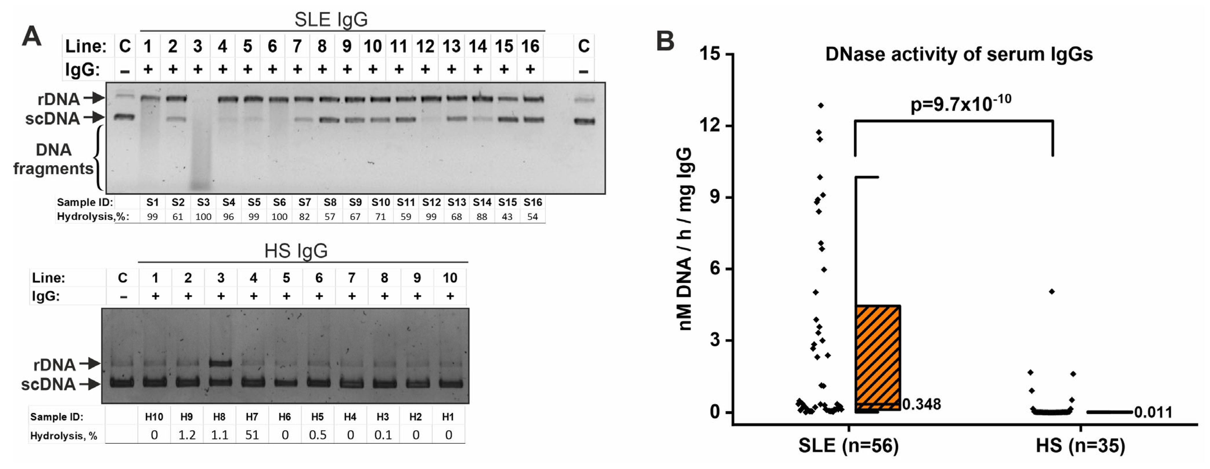 APA StyleMelamud, M. M., Ermakov, E. A., Tolmacheva, A. S., Kostrikina, I. A., Sizikov, A. E., Nevinsky, G. A., & Buneva, V. N. (2025). Catalytic IgG Antibodies Hydrolyze DNA, Histones, and HMGB1 in Systemic Lupus Erythematosus. International Journal of Molecular Sciences, 26(19), 9635. https://doi.org/10.3390/ijms26199635