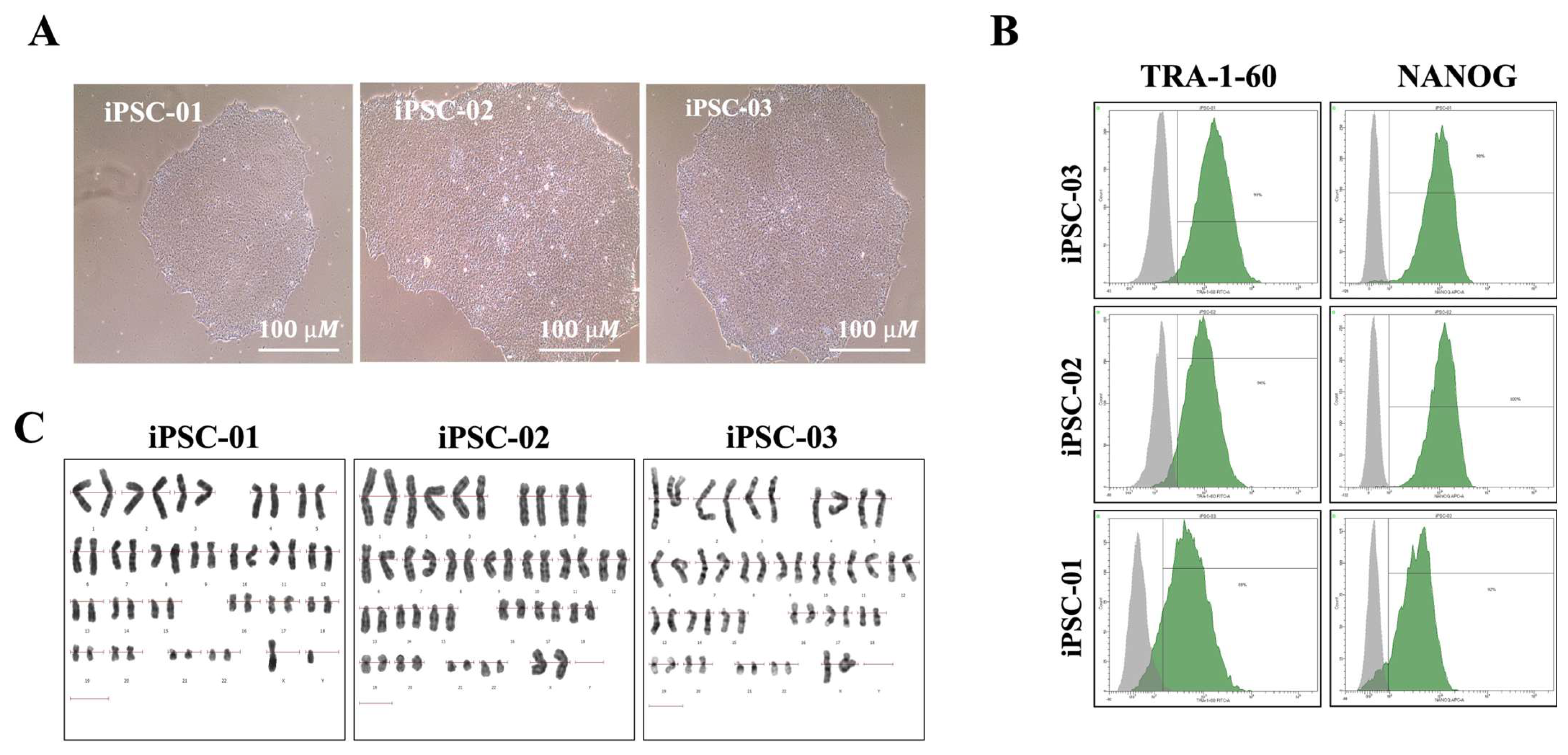 2.1. Confirmation of Pluripotency in iPSC Lines