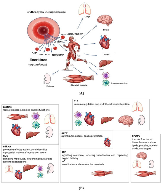 - Novelli, G.; Calcaterra, G.; Casciani, F.; Pecorelli, S.; Mehta, J.L. ‘Exerkines’: A Comprehensive Term for the Factors Produced in Response to Exercise. Biomedicines 2024, 12, 1975. [Google Scholar] [CrossRef] [PubMed]