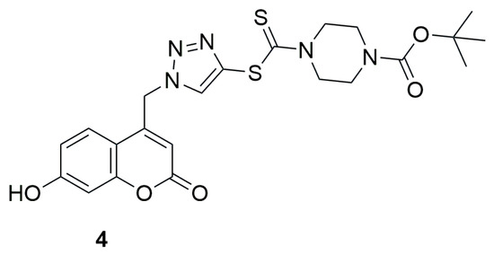 Structure of coumarin derivative 4-(((1-((7-hydroxy-2-oxo-2H-chromen-4-yl)methyl)-1H-1,2,3-triazol-4-yl)thio)carbonothioyl)piperazine-1-carboxylate (4).