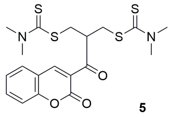 Structure of coumarin derivative 2-(2-oxo-2H-chromene-3-carbonyl)propane-1,3-diylbis(dimethylcarbamodithioate) (5).