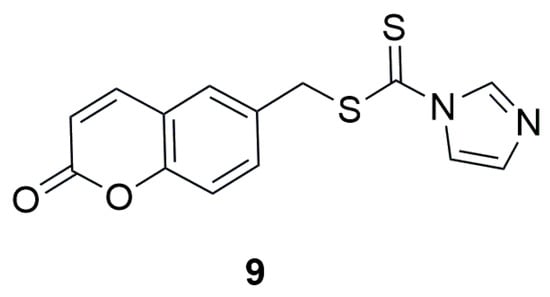 Structure of coumarin derivative (2-oxo-2H-chromen-6-yl)methyl-1H-imidazole-1-carbodithioate (9).