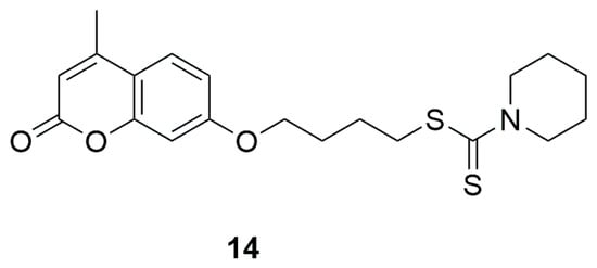 Structure of coumarin derivative 4-((4-methyl-2-oxo-2H-chromen-7-yl)oxy)butylpiperidine-1-carbodithioate (14).