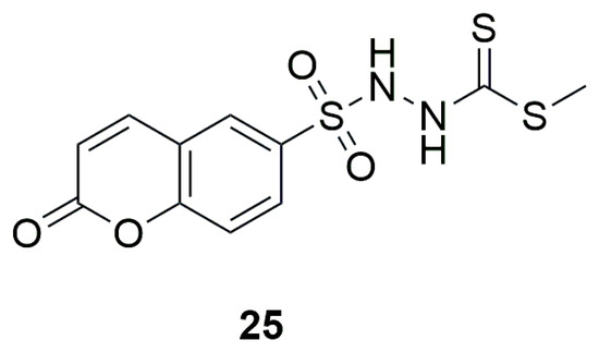 Structure of methyl 2-[(coumarin-6-yl)sulfonyl]hydrazine-1-carbodithioate (25).