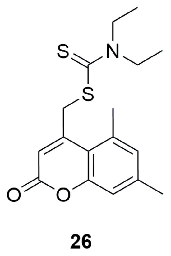 Structure of (5,7-dimethyl-2-oxo-2H-chromen-4-yl)-methyl diethyl dithiocarbamate (26).