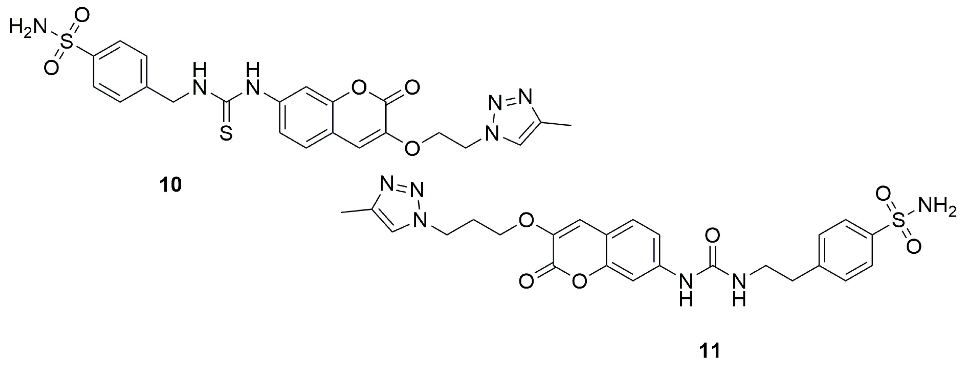 - Begines, P.; Bonardi, A.; Giovannuzzi, S.; Nocentini, A.; Gratteri, P.; De Luca, V.; Gonzalez-Bakker, A.; Padron, J.M.; Capasso, C.; Supuran, C.T. Synthesis and investigation of selective human carbonic anhydrase IX, XII inhibitors using coumarins bearing a sulfonamide or biotin moiety. Chem.-Biol. Interact. 2024, 404, 111284. [Google Scholar] [CrossRef]