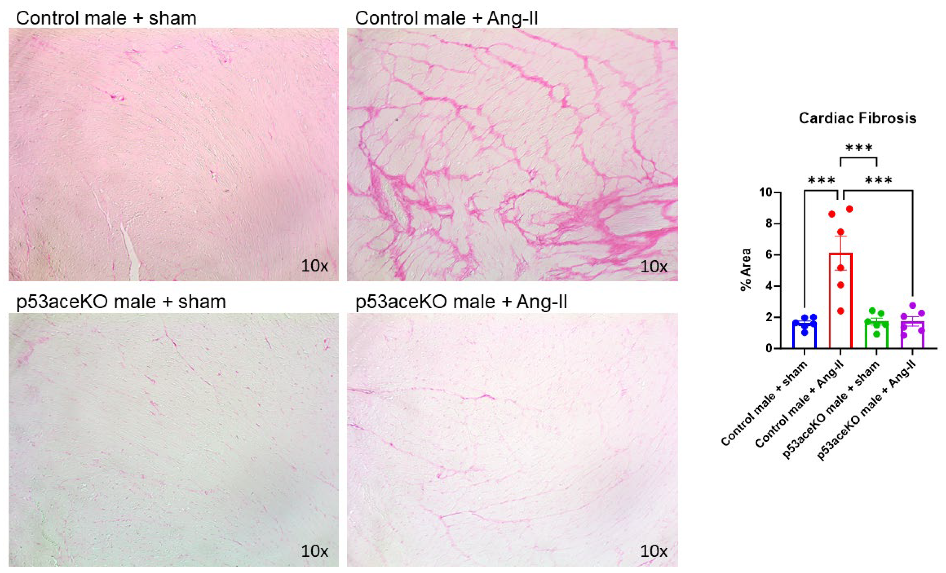 2.4. p53aceKO Mice Do Not Exhibit the Ang-II-Induced Cardiac Fibrosis Seen in Control Mice