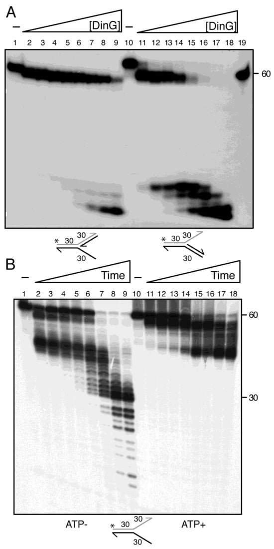 2.9. DinG Resects Fork DNA Via 3′-Tail Degradation
