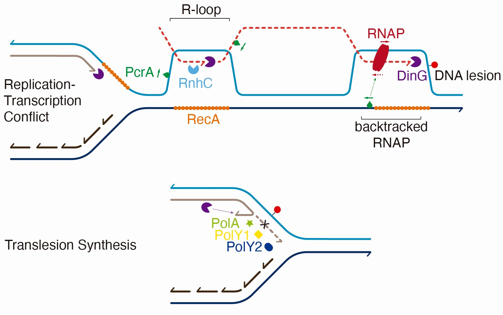 - Browning, K.R.; Merrikh, H. Replication-Transcription Conflicts: A Perpetual War on the Chromosome. Annu. Rev. Biochem. 2024, 93, 21–46. [Google Scholar] [CrossRef]