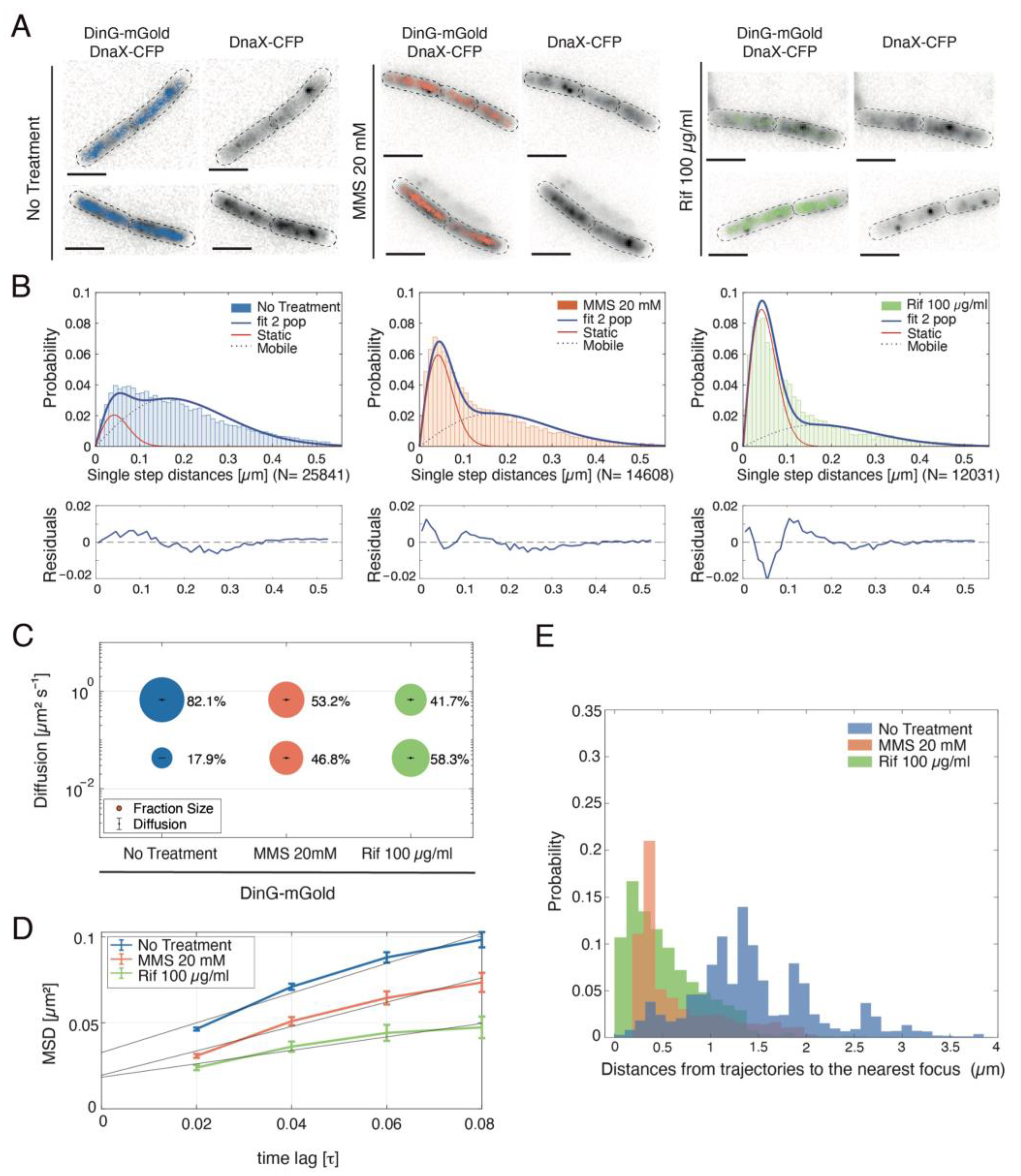 2.15. DinG-mGold Molecules Are Recruited to DnaX-CFP upon Endogenous or Environmental Threats