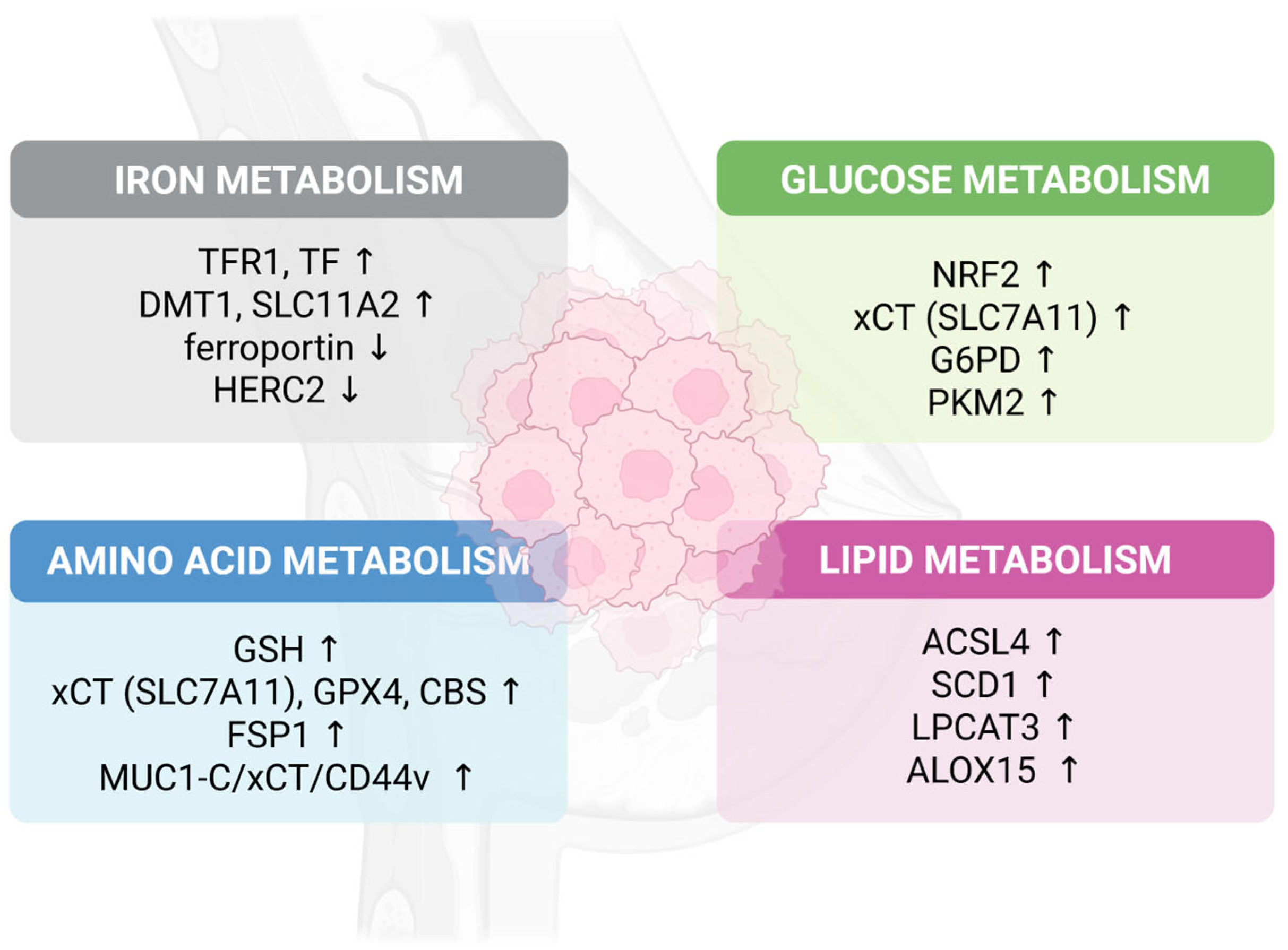 Mesenchymal (MES) | Moderate | Enriched iron metabolism, low FA/ROS activity |