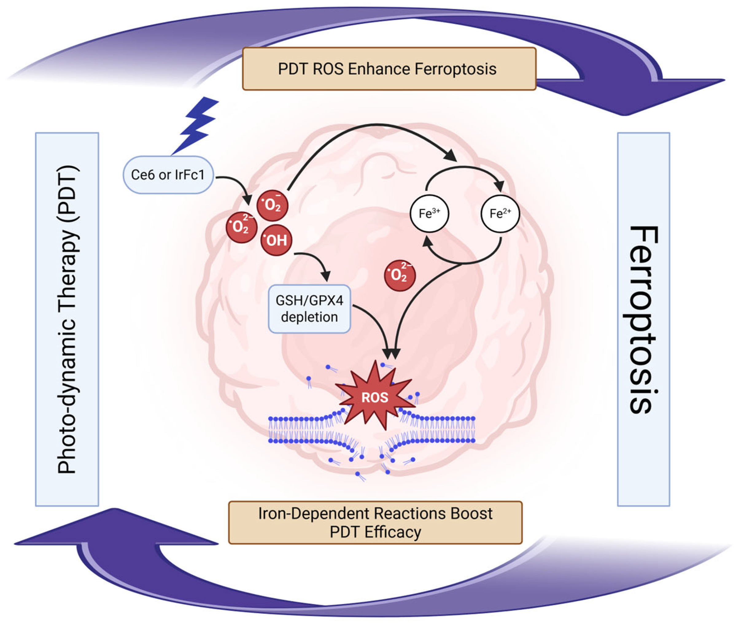 7.3. Photodynamic-Ferroptosis Synergy Treatment