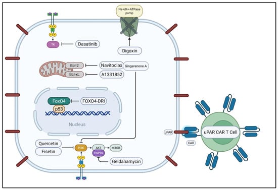 - Huang, Y.; Liu, T. Step further towards targeted senolytic therapy: Therapeutic potential of uPAR-CAR T cells for senescence-related diseases. Signal Transduct. Target. Ther. 2020, 5, 155. [Google Scholar] [CrossRef]