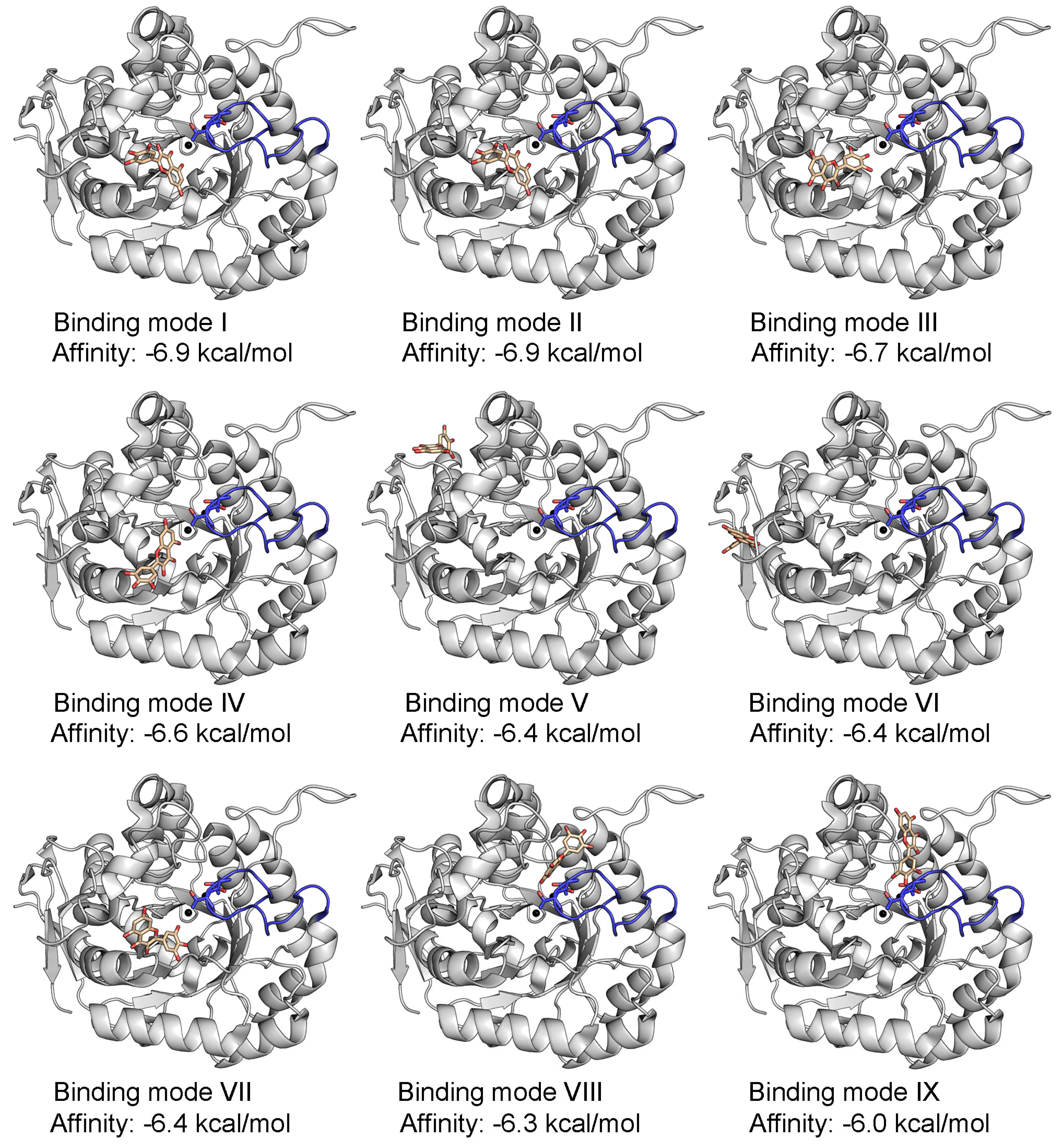 4.4. Binding Analysis Using AutoDock Vina