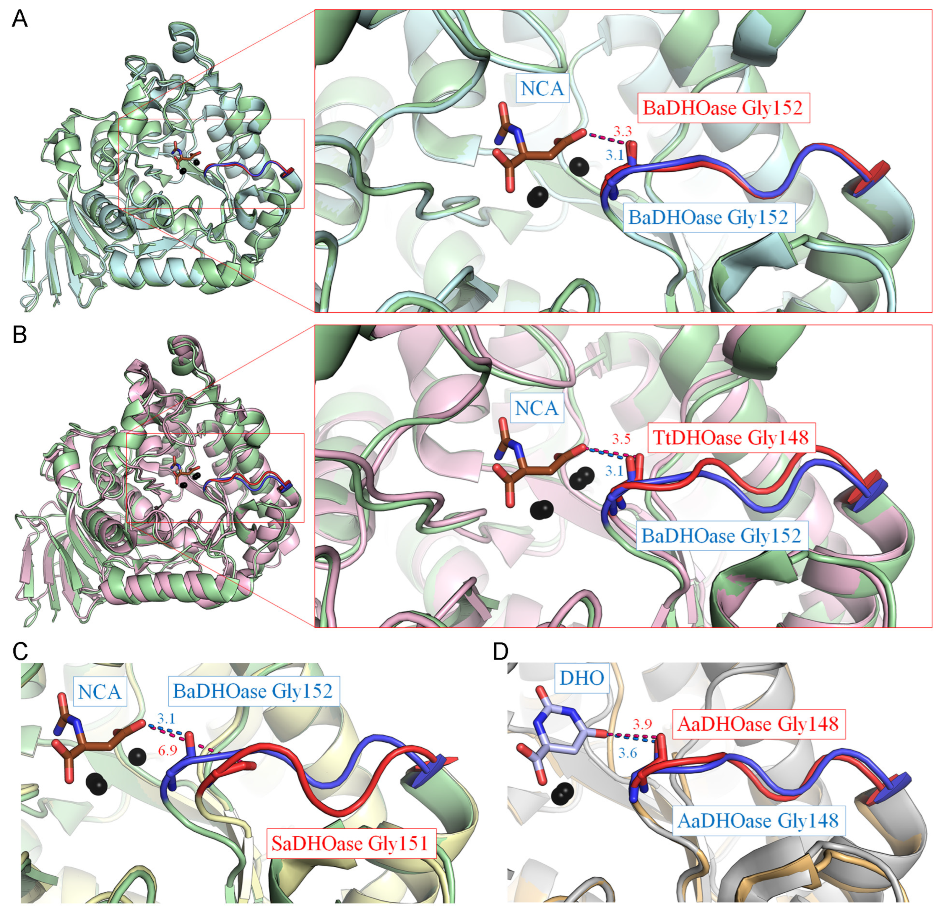 4.5. Collection and Analysis of DHOase Structures from PDB for Active Site Loop Conformation