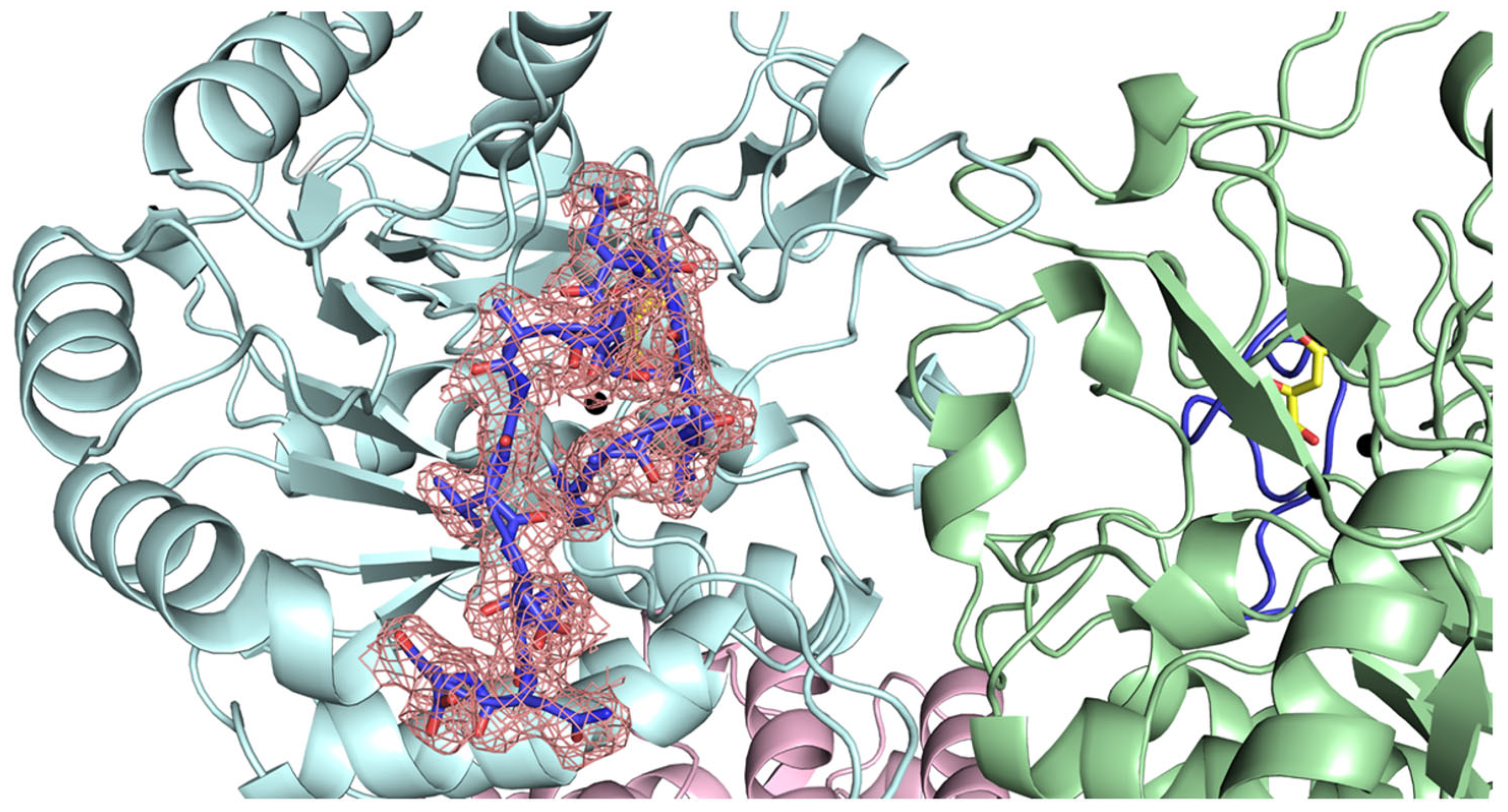 - Evans, H.G.; Fernando, R.; Vaishnav, A.; Kotichukkala, M.; Heyl, D.; Hachem, F.; Brunzelle, J.S.; Edwards, B.F.; Evans, D.R. Inter-subunit communication in the dihydroorotase-aspartate transcarbamoylase complex of Aquifex aeolicus. Protein Sci. 2014, 23, 100–109. [Google Scholar] [CrossRef]