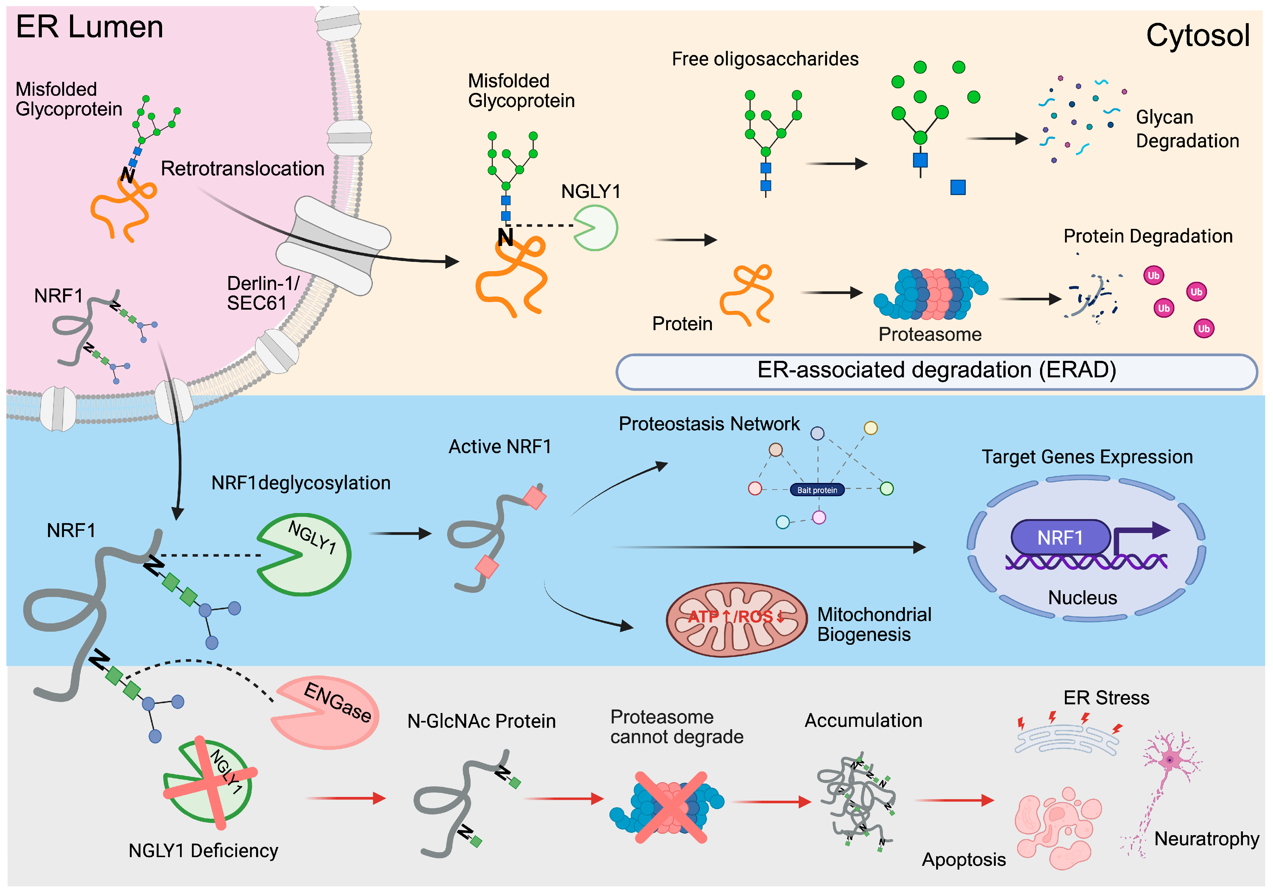 2.1. Deglycosylation Activity of NGLY1 and Its Relevance to Proteostasis