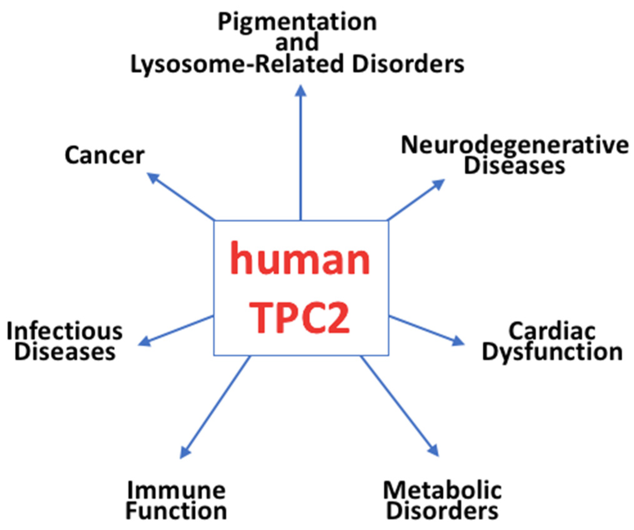 - Patel, S.; Kilpatrick, B.S. Two-Pore Channels and Disease. Biochim. Biophys. Acta Mol. Cell Res. 2018, 1865, 1678–1686. [Google Scholar] [CrossRef]