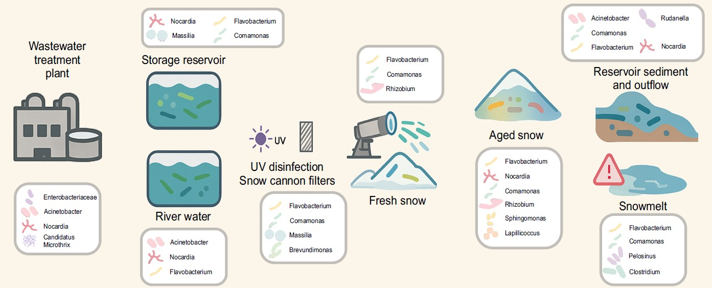 | Clostridium sensu stricto 1 and 13 | soils, organic rich sediments, | spore-forming, can survive disinfection, includes pathogens | Snowmelt/Sediment reservoir A | 1.21/2.4 |